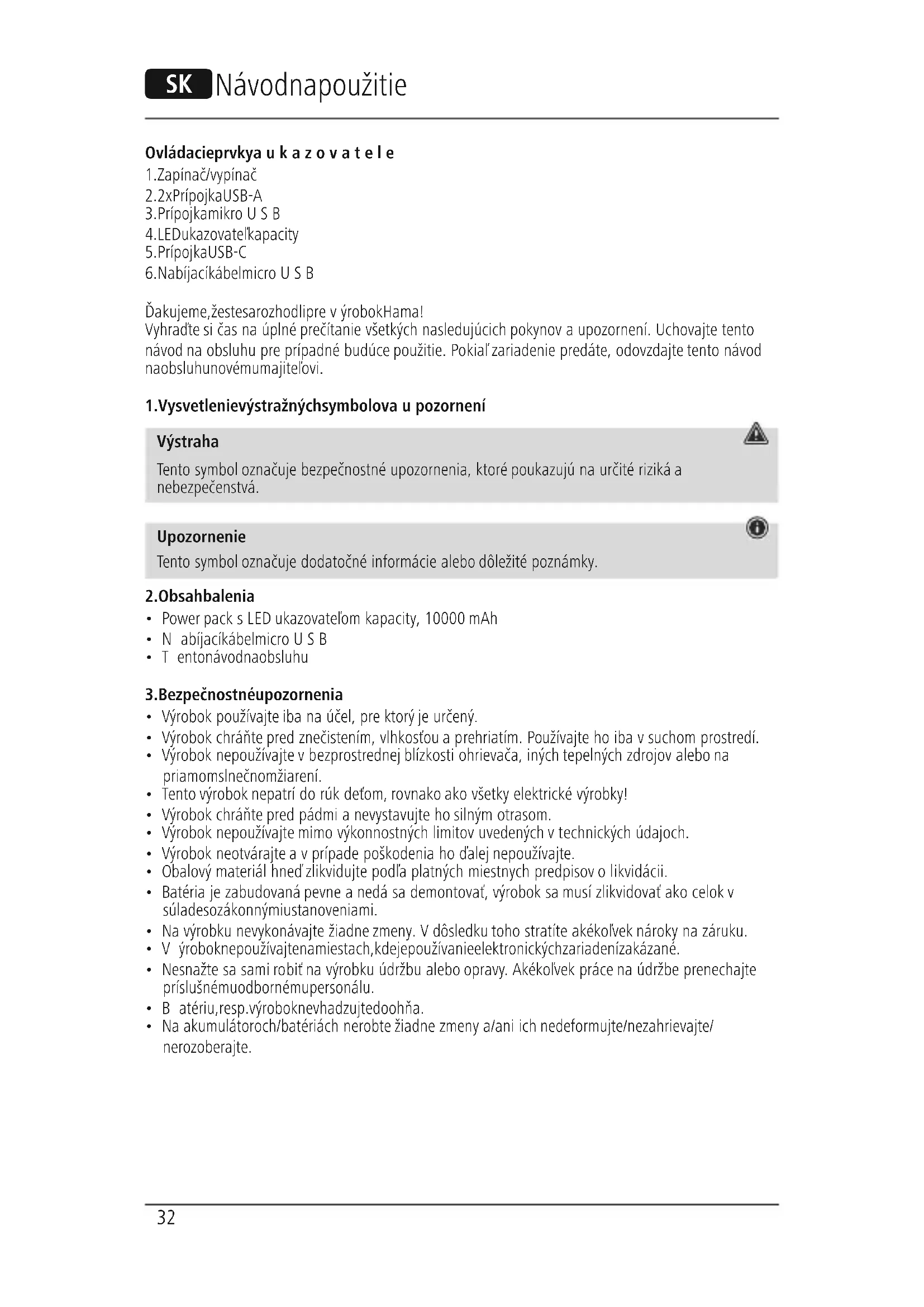 Ďakujeme, že ste sa rozhodli prevýrobok Hama! Vyhraďte si čas na úplné prečítanie všetkých nasledujúcich pokynov aupozornení. Uchovajte tento návod na obsluhu preprípadné budúce použitie. Pokiaľ zariadenie predáte, odovzdajte tento návod na obsluhu novému majiteľovi.