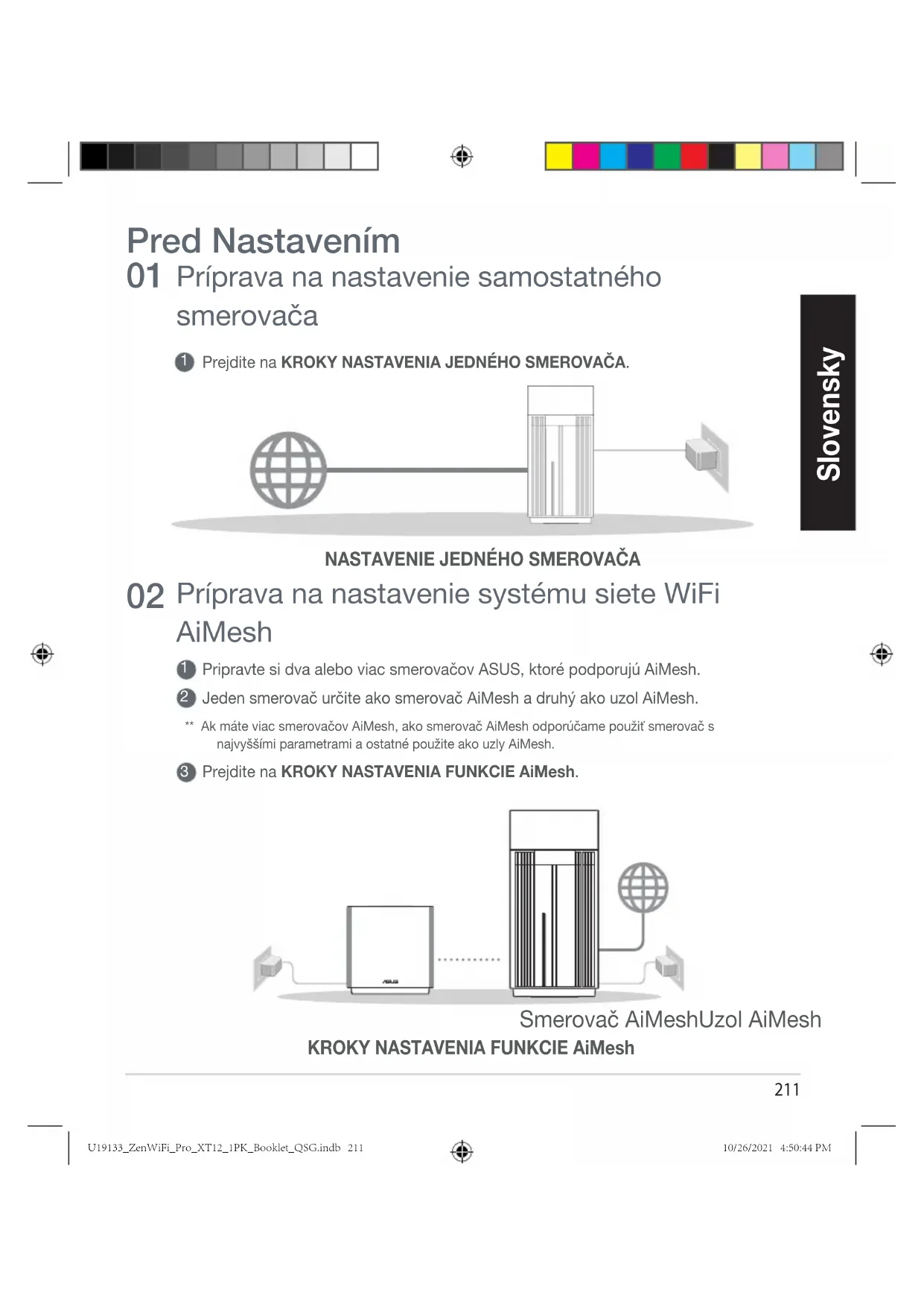 Kliknite na Search (Vyhľadať), Automaticky vyhľadá váš uzol AiMesh v okolí. Keď sa uzol AiMesh zobrazí na tejto stránke, kliknutím naň ho pridáte do systému AiMesh. ** Ak nedokážte nájsť žiadny uzol AiMesh, prejdite na časť RIEŠENIE PROBLÉMOV. Smerovač AiMeshUzol AiMeshModemLogout/RebootAiMesh Router U19133_ZenWiFi_Pro_XT12_1PK_Booklet_QSG.indb 215U19133_ZenWiFi_Pro_XT12_1PK_Booklet_QSG.indb 215 10/26/2021 4:50:45 PM10/26/2021 4:50:45 PM216 Slovensky