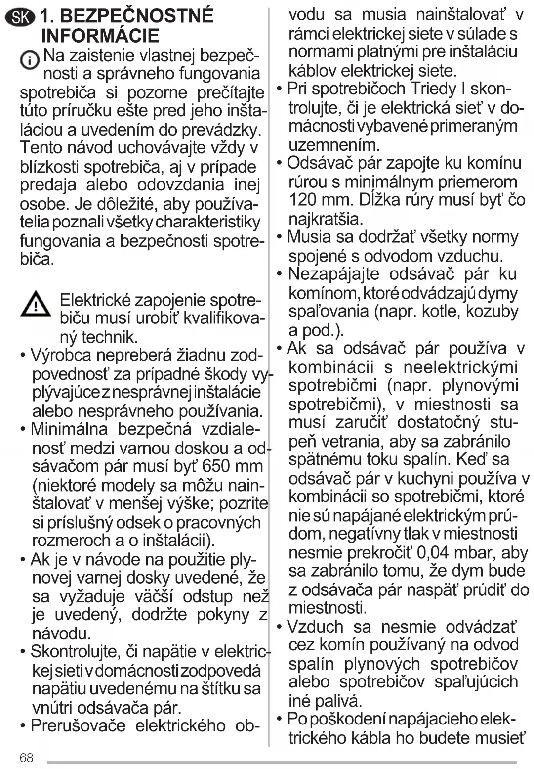 - Nezapájajte odsávač pár ku komínom, ktoré odvádzajú dymy spaľovania (napr. kotle, kozuby a pod.).