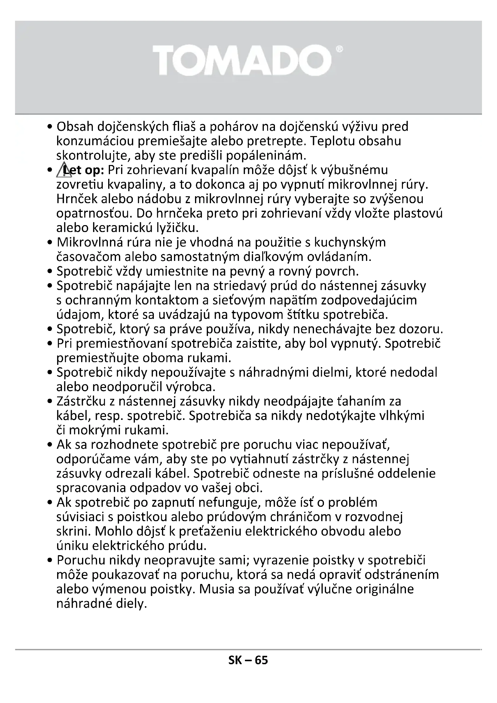 Príslušenstvoalebonáhradnédielyobjednávajtecezwww.tomado.com/support.
