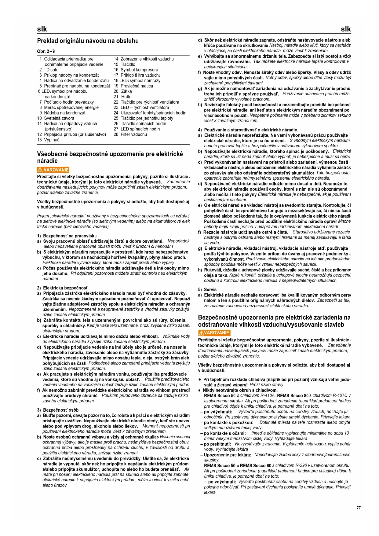 Zariadenie dajte skontrolovať/opraviť autorizovaným zmluvným strediskom pre služby zákazníkom spoločnosti REMS. slk slk