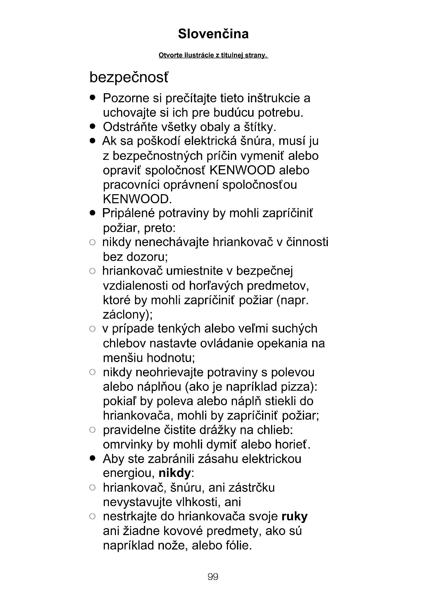 nestrkajte do hriankovača svoje ruky ani žiadne kovové predmety, ako sú napríklad nože, alebo fólie. Slovenčina Otvorte ilustrácie z titulnej strany.English