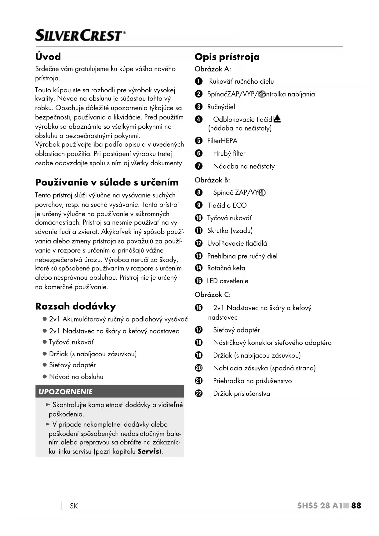 NÁVOD NA OBSLUHU SHSS 28 A1 SILVERCREST