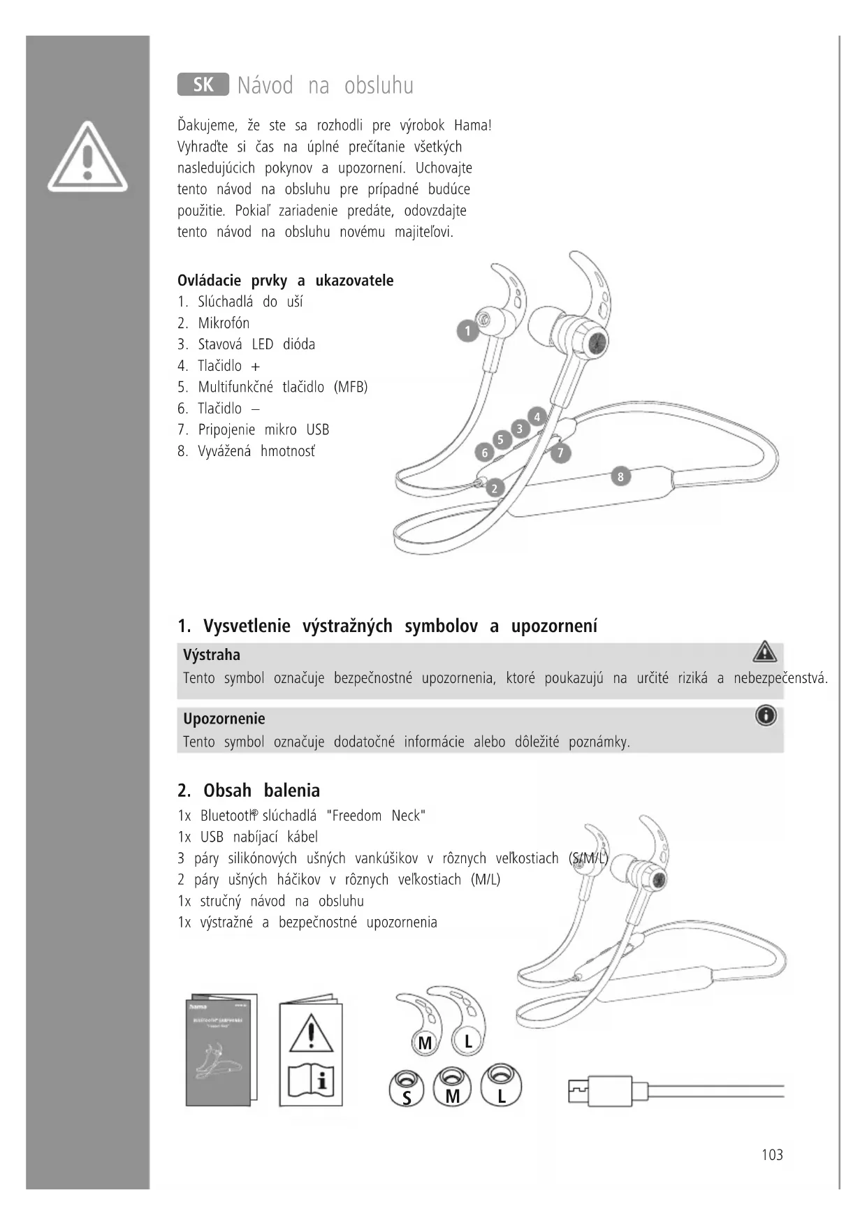 - Používanie výrobku obmedzuje vnímanie okolitých zvukov Počas jeho používania preto neriaďte žiadne vozidlá a neobsluhujte žiadne stroje