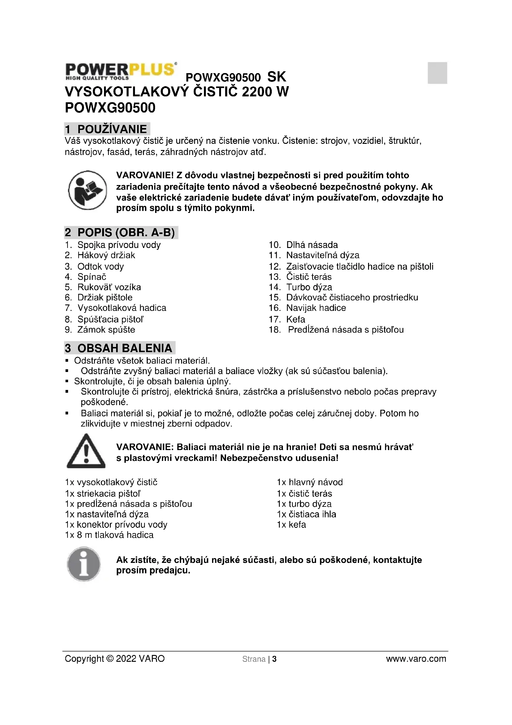 - Osobám, ktoré neboli zaškoléné do použivania vysokotlakového Čistica ani si neprecītali námod na použivanie nedovol'te stroj použivat!