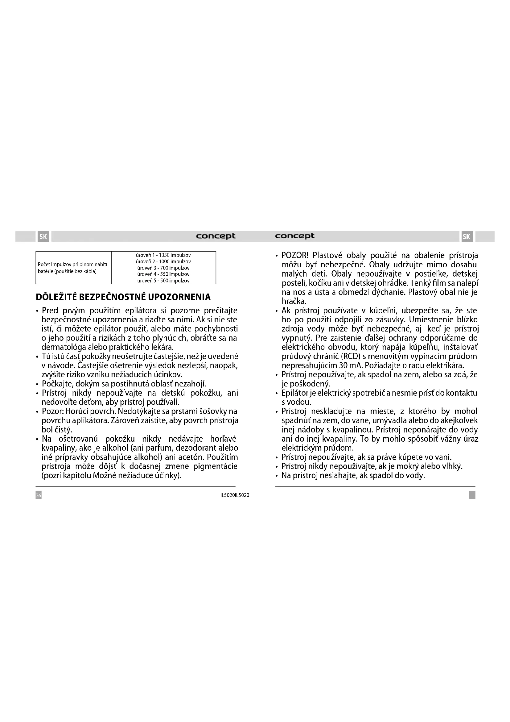 Perfect Skin IL5020 - Epilátor Concept - Bezplatný návod na obsluhu
