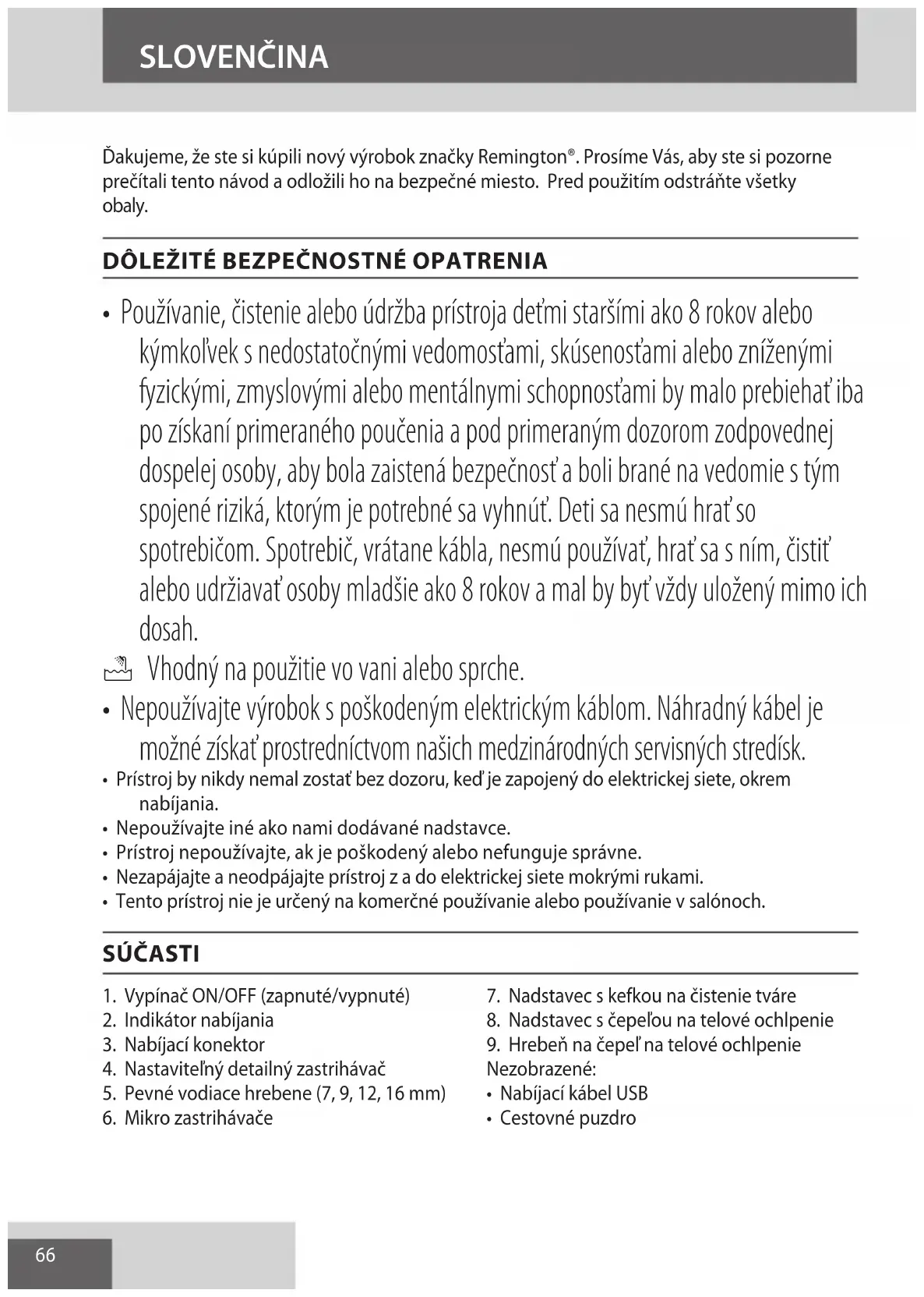 AE66 Ďakujeme, že ste si kúpili nový výrobok značky Remington®. Prosíme Vás, aby ste si pozorne prečítali tento návod a odložili ho na bezpečné miesto. Pred použitím odstráňte všetky obaly.