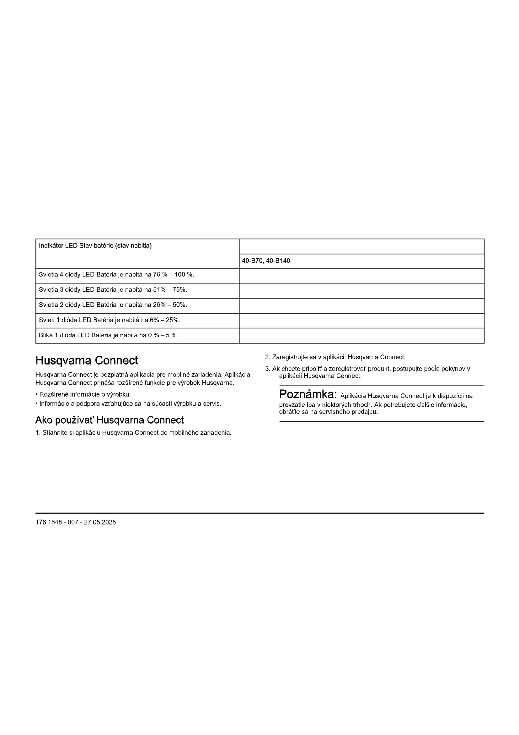 40B70 - Batéria HUSQVARNA - Bezplatný návod na obsluhu