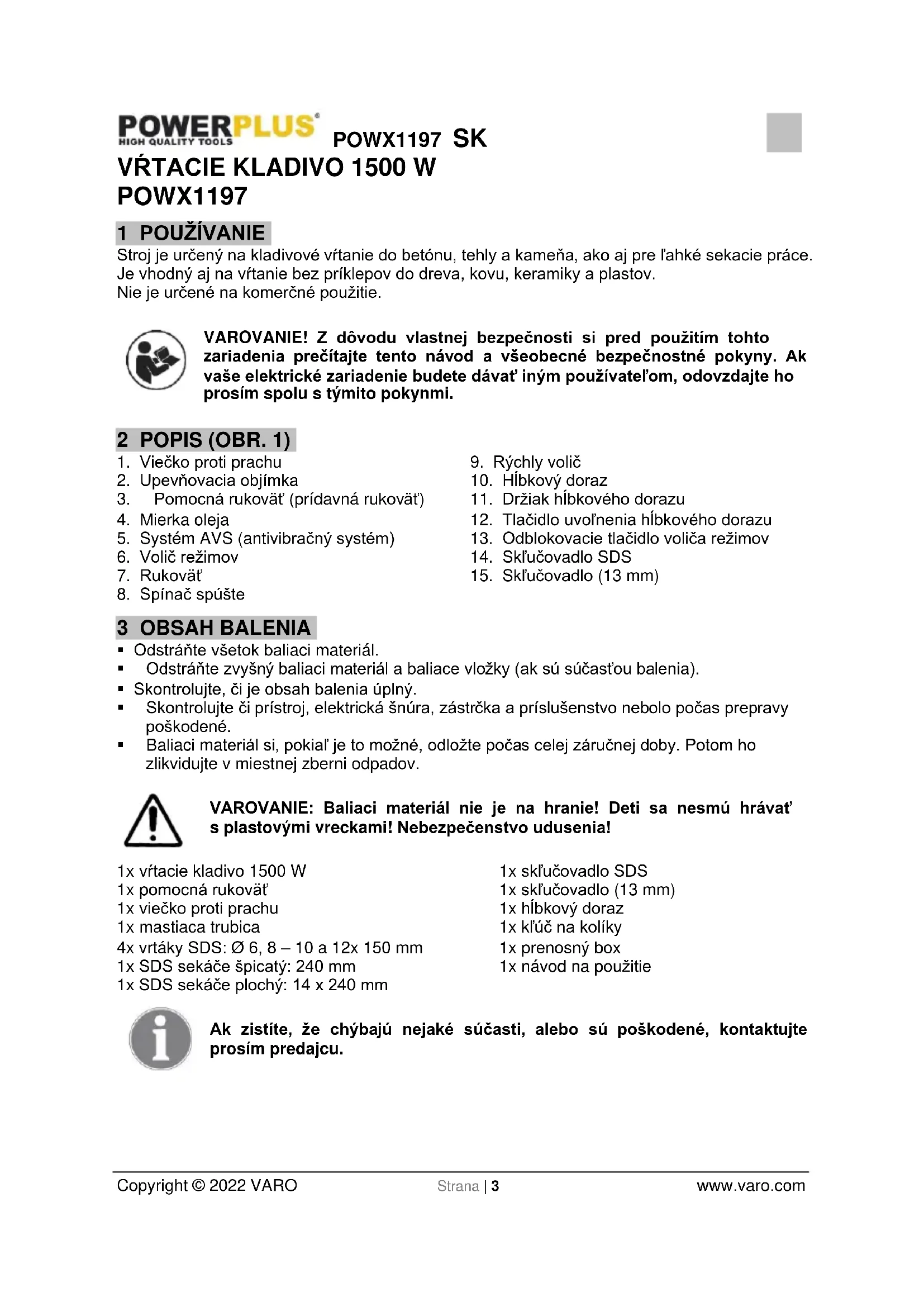 NÁVOD NA OBSLUHU POWX1197 PowerPlus
