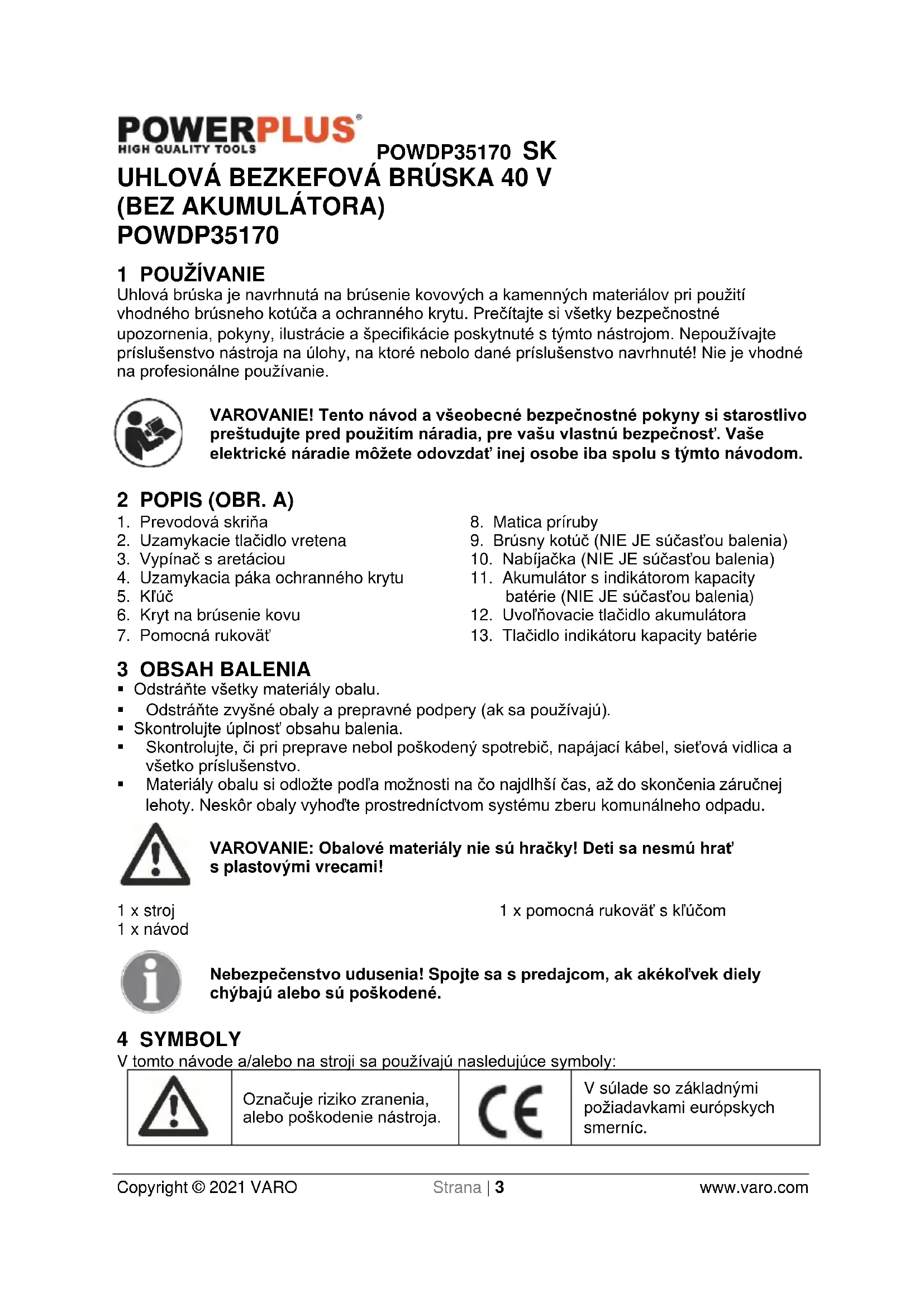 V súlade so základnými požiadavkami európskych smerníc.POWDP35170 SK Copyright © 2021 VARO Strana | 4 www.varo.com