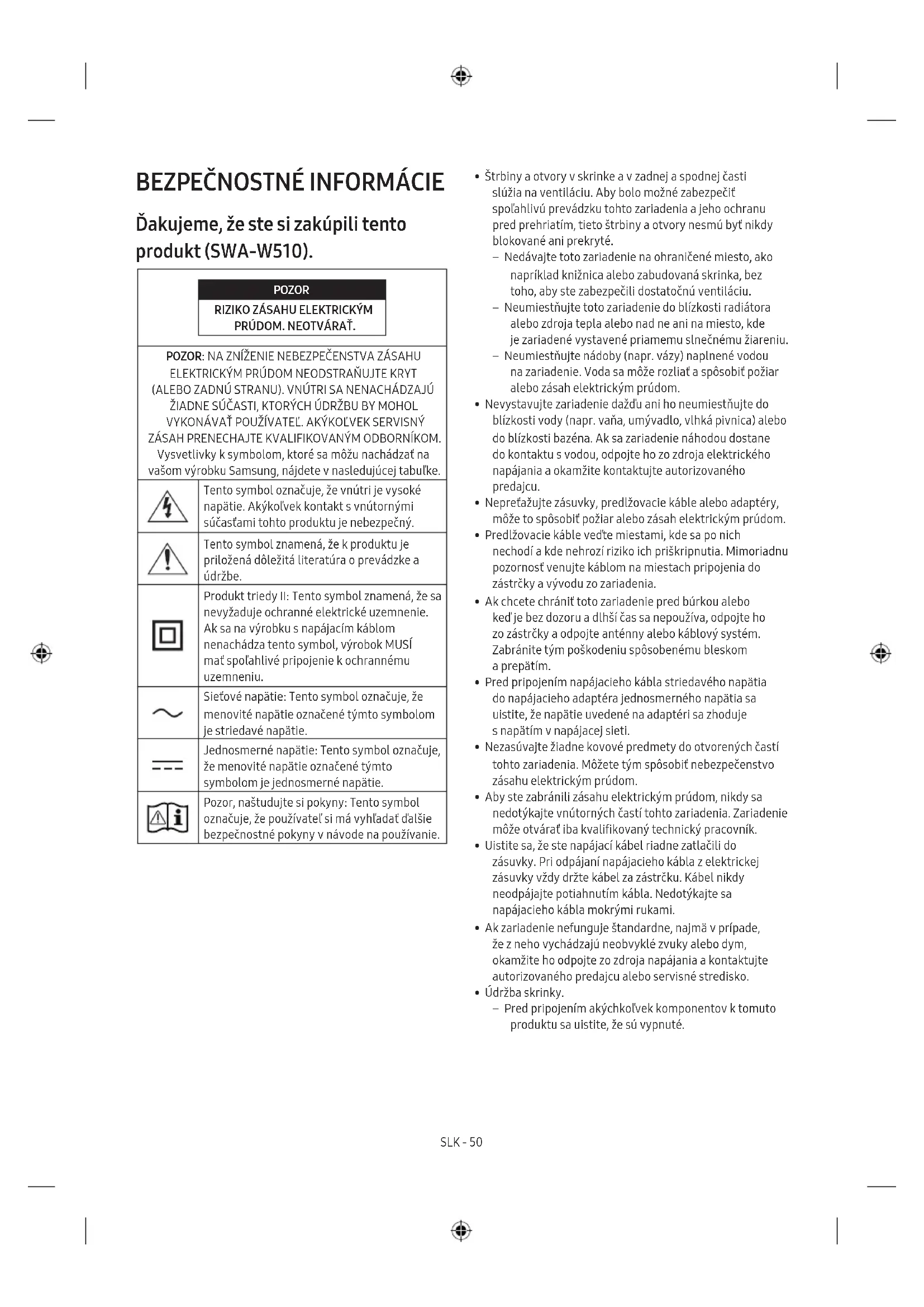 Ďakujeme, že ste si zakúpili tento produkt (SWA-W510). POZOR