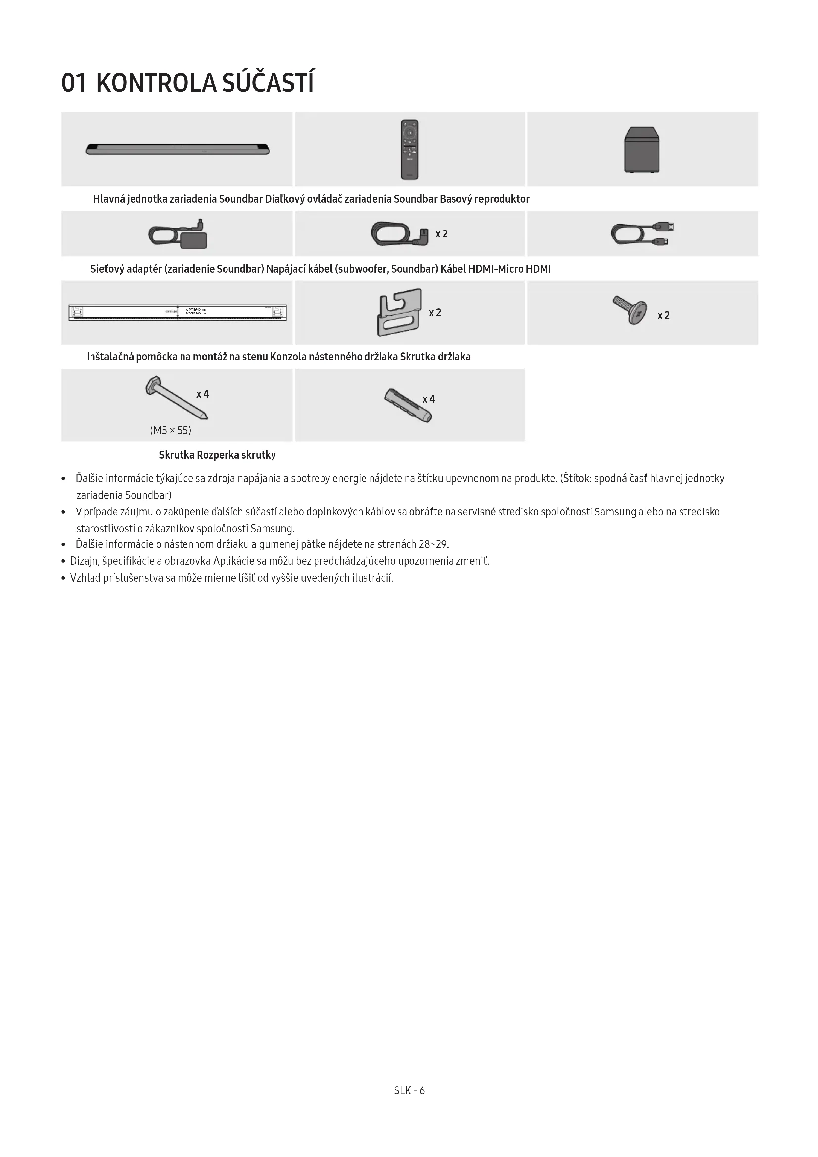 - Vzhľad príslušenstva sa môže mierne líšiť od vyššie uvedených ilustrácií.SLK - 7