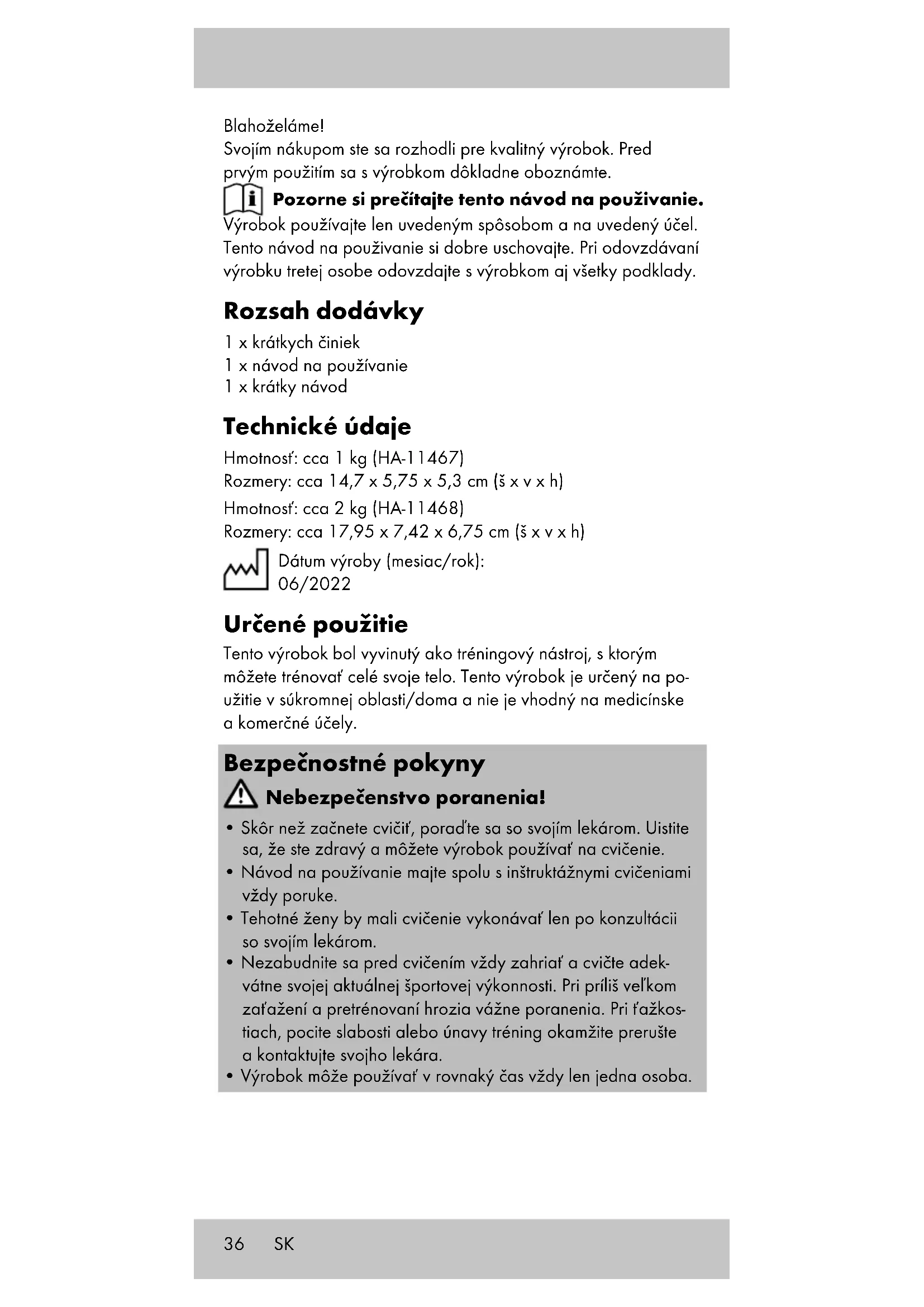 - Návod na používanie majte spolu s inštruktážnymi cvičeniami vždy poruke.