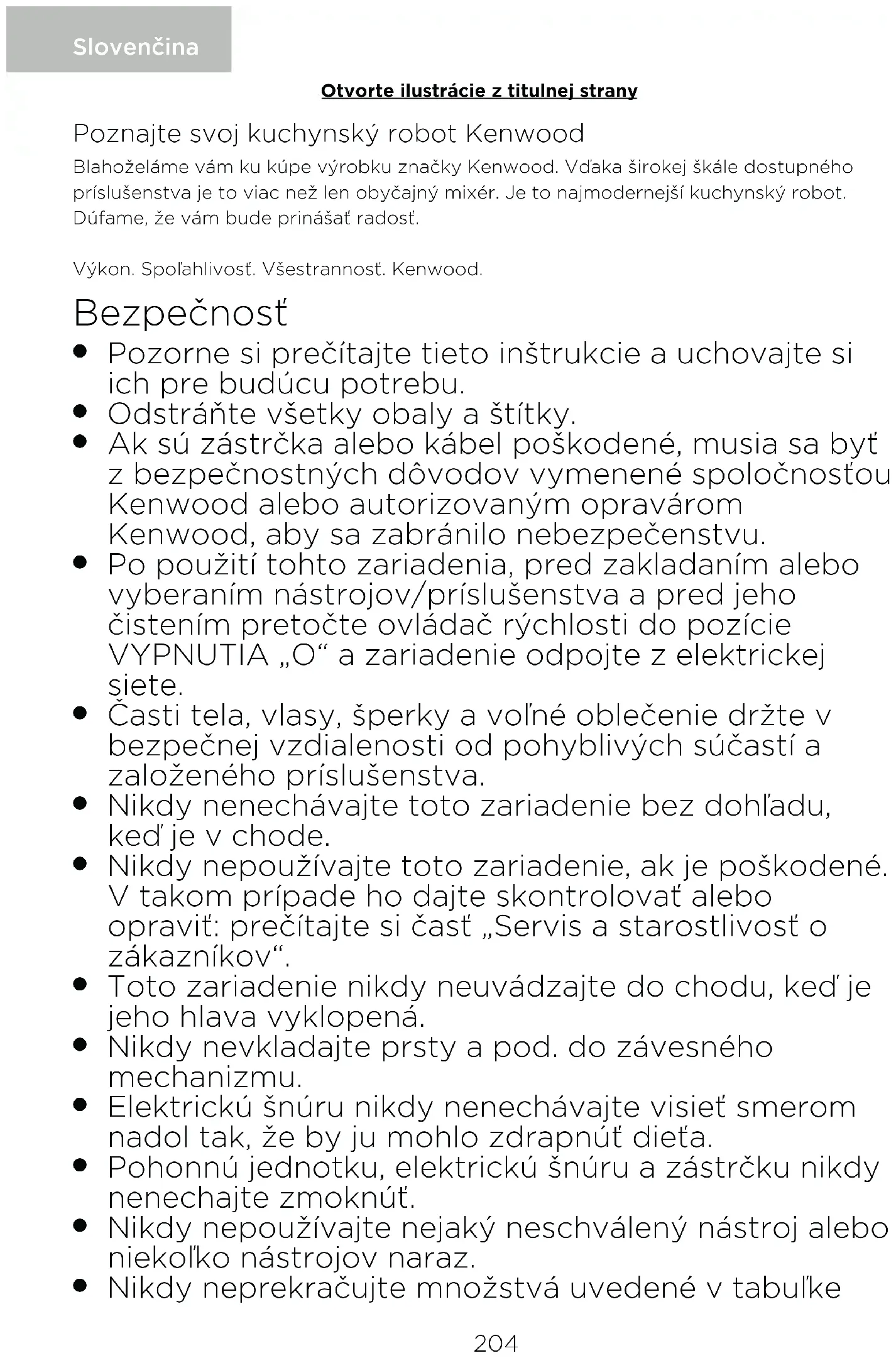 Toto zariadenie používajte len v domácnosti na stanovený účel. Firma Kenwood nepreberie žiadnu zodpovednosť za následky nesprávneho používania zariadenia, ani za následky nerešpektovania týchto inštrukcií. Pred zapnutím zariadenia