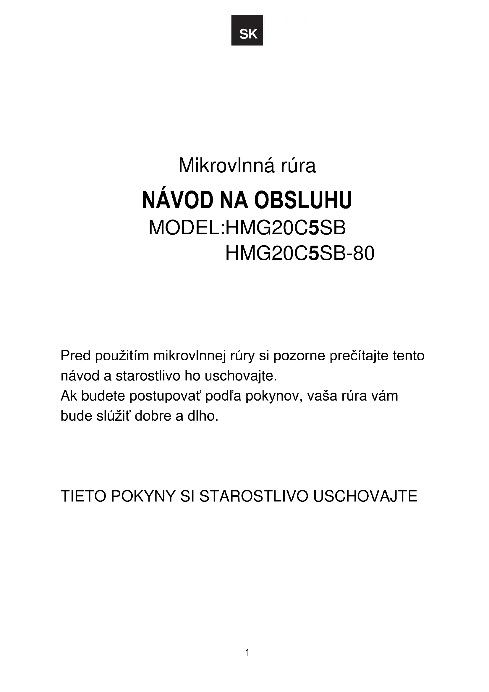 Pred použitím mikrovlnnej rúry si pozorne prečítajte tento návod a starostlivo ho uschovajte. Ak budete postupovať podľa pokynov, vaša rúra vám bude slúžiť dobre a dlho.