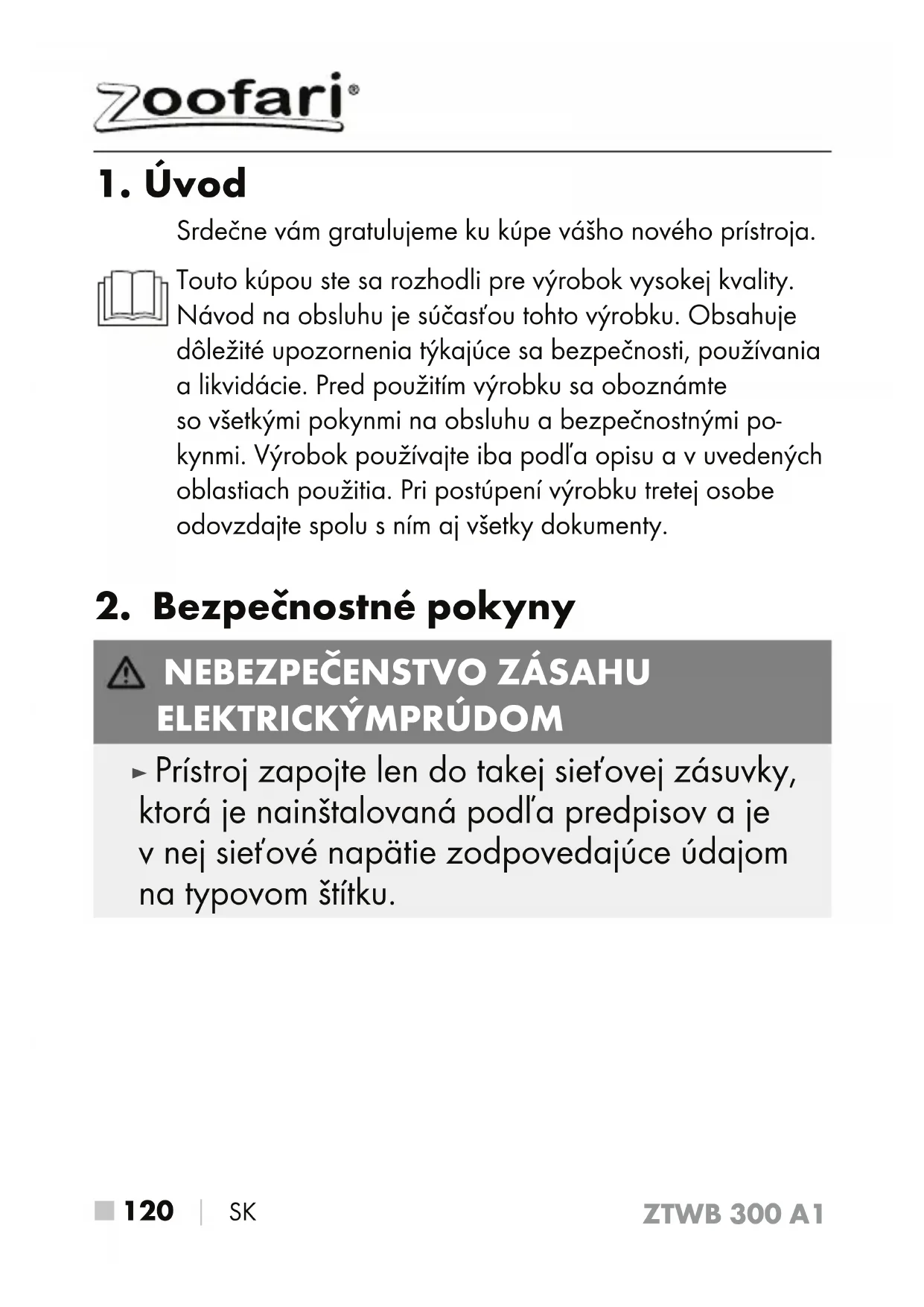 NÁVOD NA OBSLUHU ZTWB 300 A1 ZOOFARI