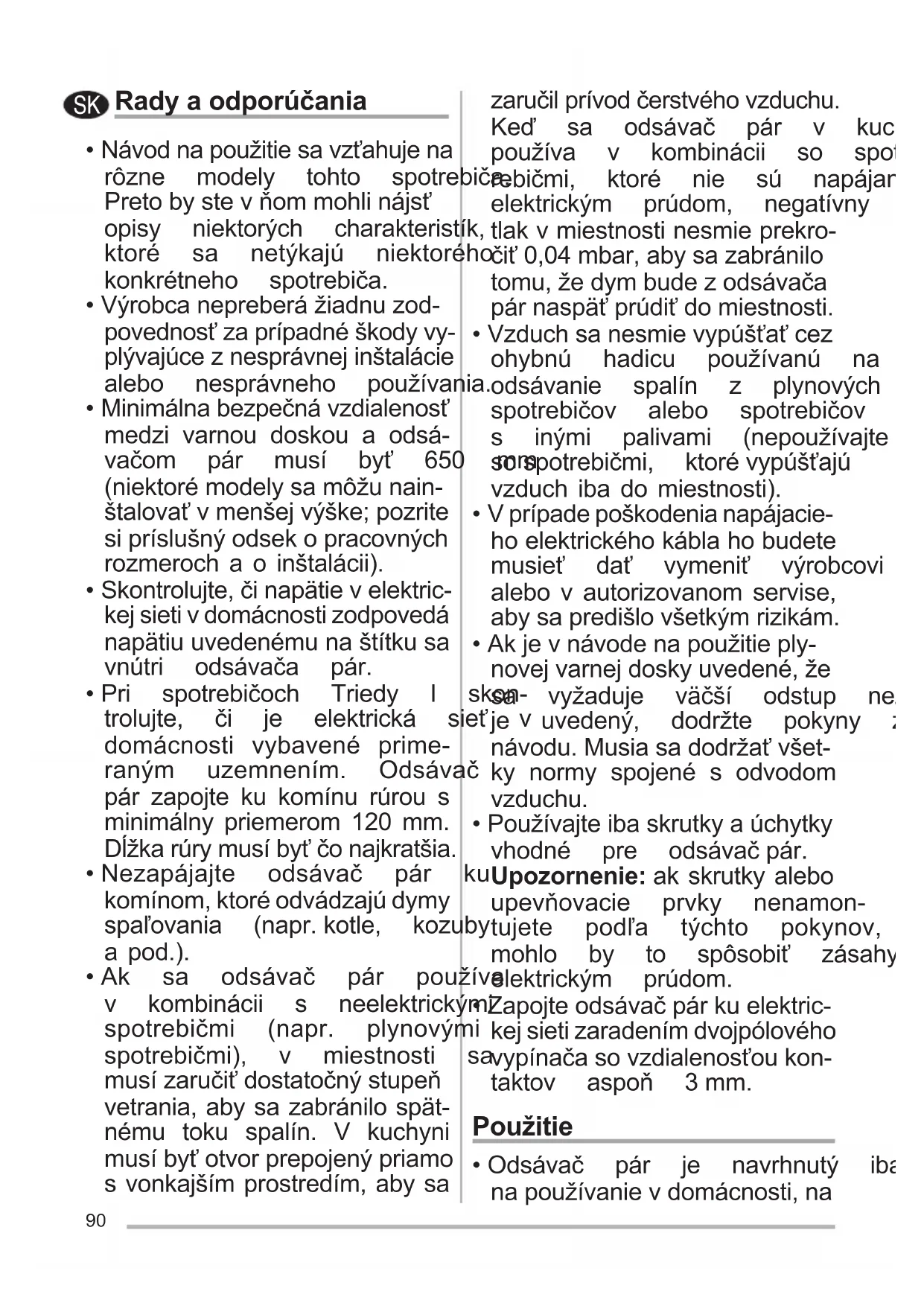 - Nezapájajte odsávač pár ku komínom, ktoré odvádzajú dymy spaľovania (napr.kotle, kozuby a pod.).