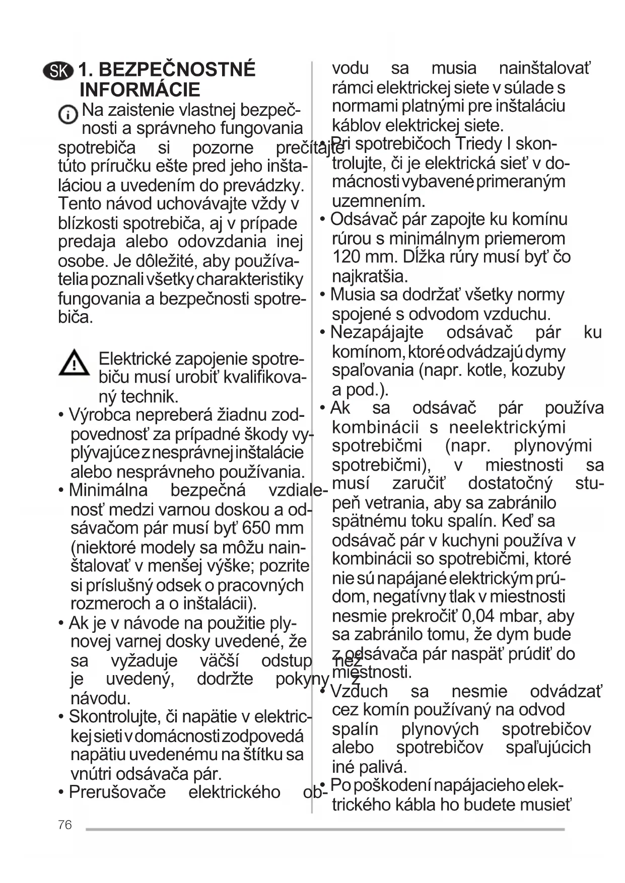 - Nezapájajte odsávač pár ku komínom, ktoré odvádzajú dymy spaľovania(napr.kotle,kozuby a pod.).