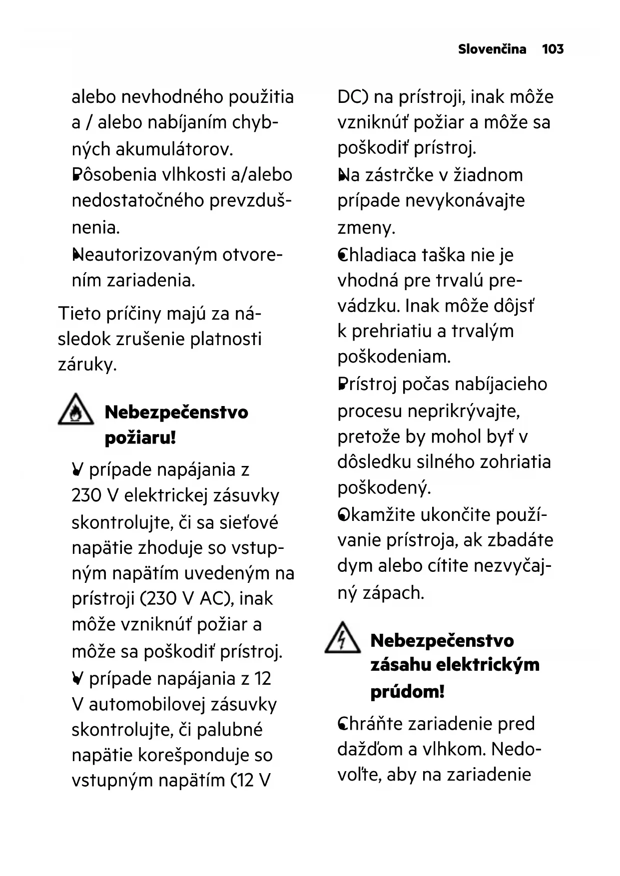 Neautorizovaným otvore- ním zariadenia. Tieto príčiny majú za ná- sledok zrušenie platnosti záruky. Nebezpečenstvo požiaru!