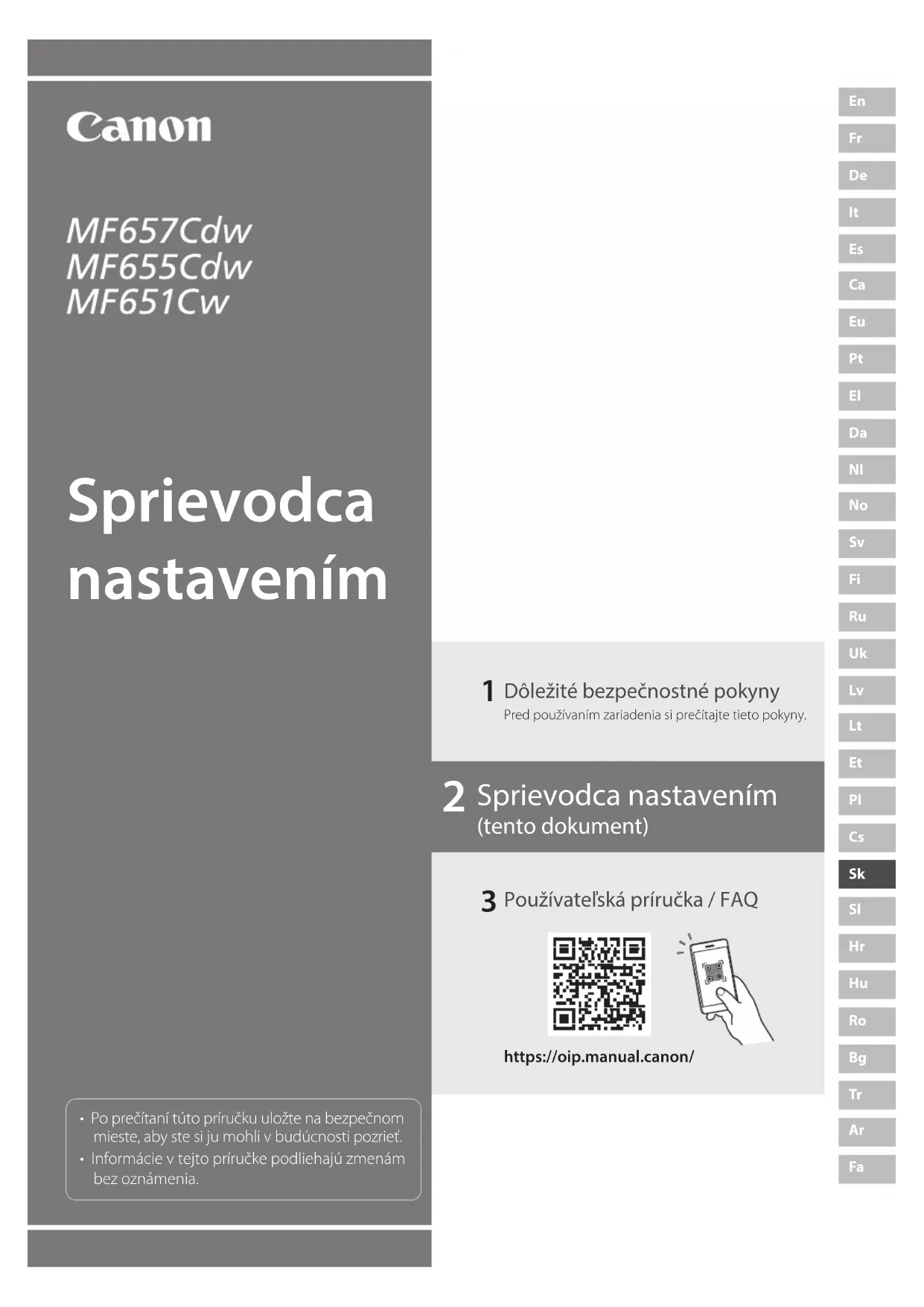 - Po prečítaní túto príručku uložte na bezpečnom mieste, aby ste si ju mohli v budúcnosti pozrieť.• Informácie v tejto príručke podliehajú zmenám bez oznámenia.https://oip.manual.canon/ Dôležité bezpečnostné pokynyPred používaním zariadenia si prečítajte tieto pokyny. Používateľská príručka / FAQ
