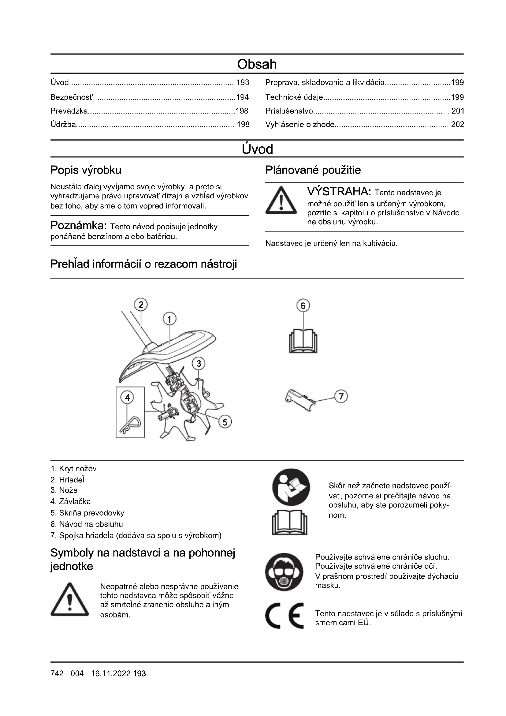742 - 004 - 16.11.2022 193Tento výrobok je vsúlade spríslušnými