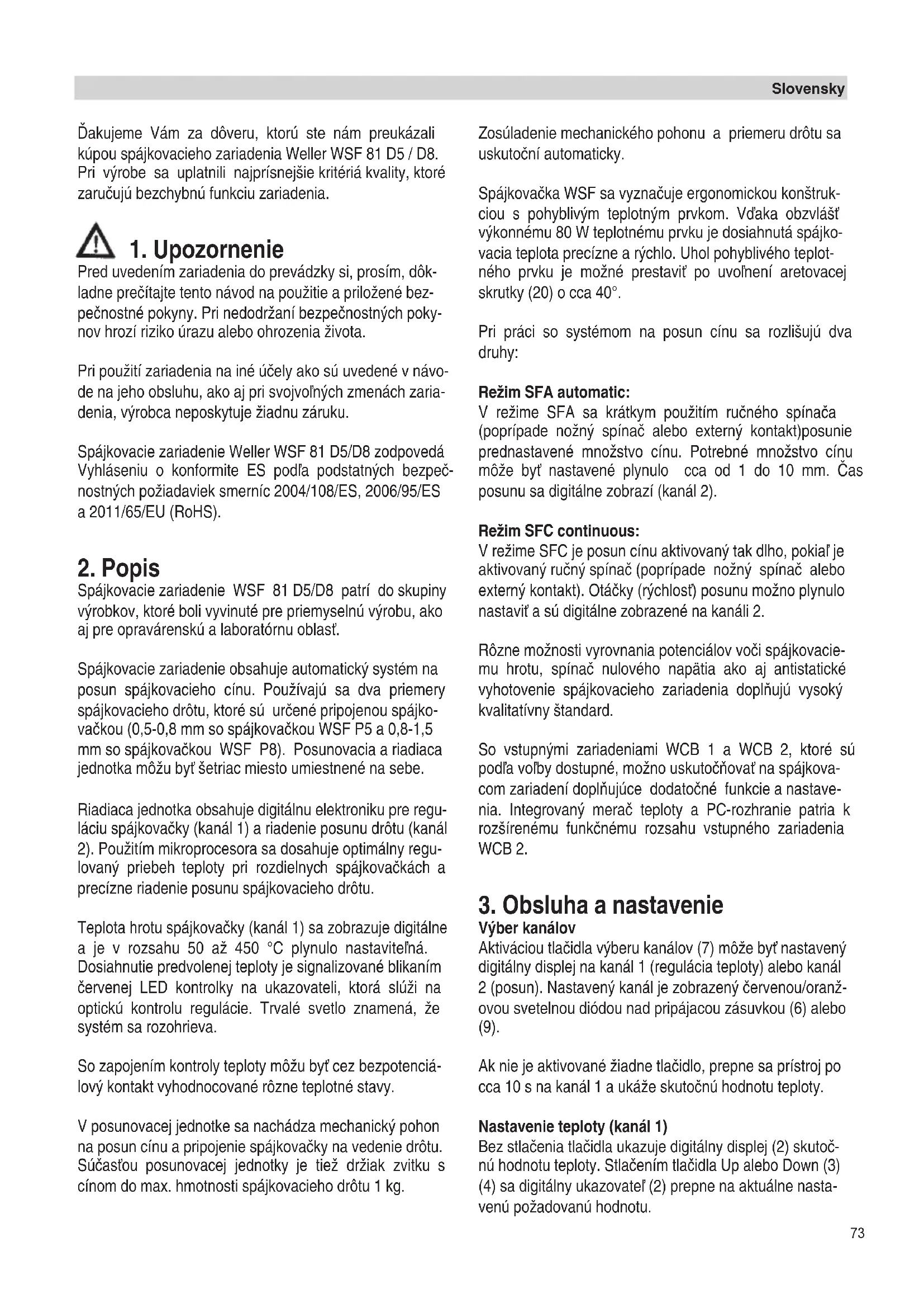 ëakujeme Vám za dôveru, ktorú ste nám preukázali kúpou spájkovacieho zariadenia Weller WSF 81 D5 / D8. Pri v˘robe sa uplatnili najprísnej‰ie kritériá kvality, ktoré zaruãujú bezchybnú funkciu zariadenia.