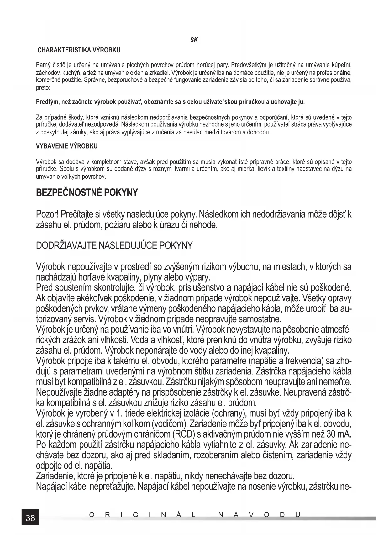 Parný čistič je určený na umývanie plochých povrchov prúdom horúcej pary. Predovšetkým je užitočný na umývanie kúpeľní, záchodov, kuchýň, a tiež na umývanie okien a zrkadiel. Výrobok je určený iba na domáce použitie, nie je určený na profesionálne, komerčné použitie. Správne, bezporuchové a bezpečné fungovanie zariadenia závisia od toho, či sa zariadenie správne používa, preto: Predtým, než začnete výrobok používať, oboznámte sa s celou užívateľskou príručkou a uchovajte ju. Za prípadné škody, ktoré vzniknú následkom nedodržiavania bezpečnostných pokynov a odporúčaní, ktoré sú uvedené v tejto príručke, dodávateľ nezodpovedá. Následkom používania výrobku nezhodne s jeho určením, používateľ stráca práva vyplývajúce z poskytnutej záruky, ako aj práva vyplývajúce z ručenia za nesúlad medzi tovarom a dohodou.