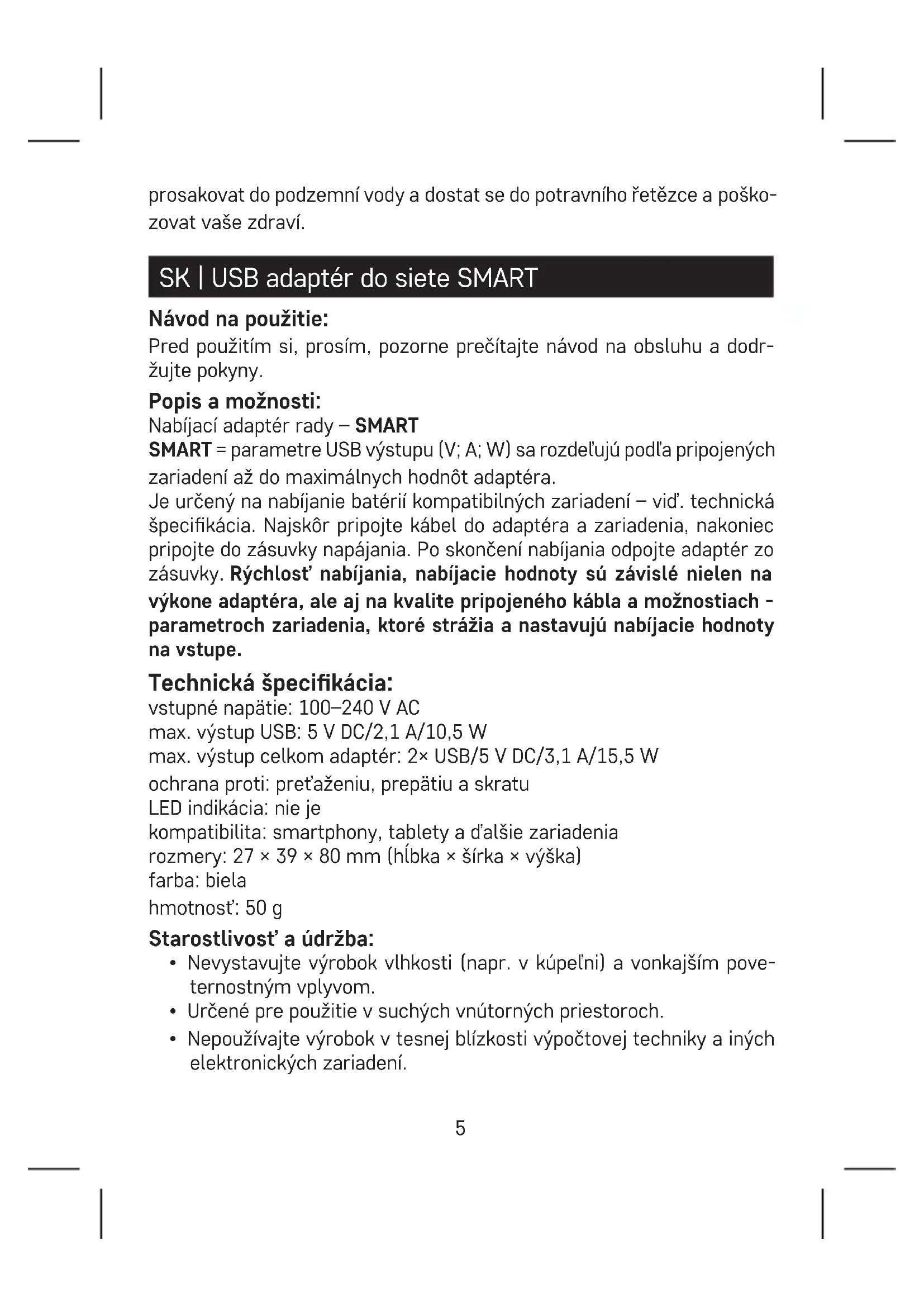 - USB adaptér odpojte zo zdroja, pokiaľ nie je používaný.