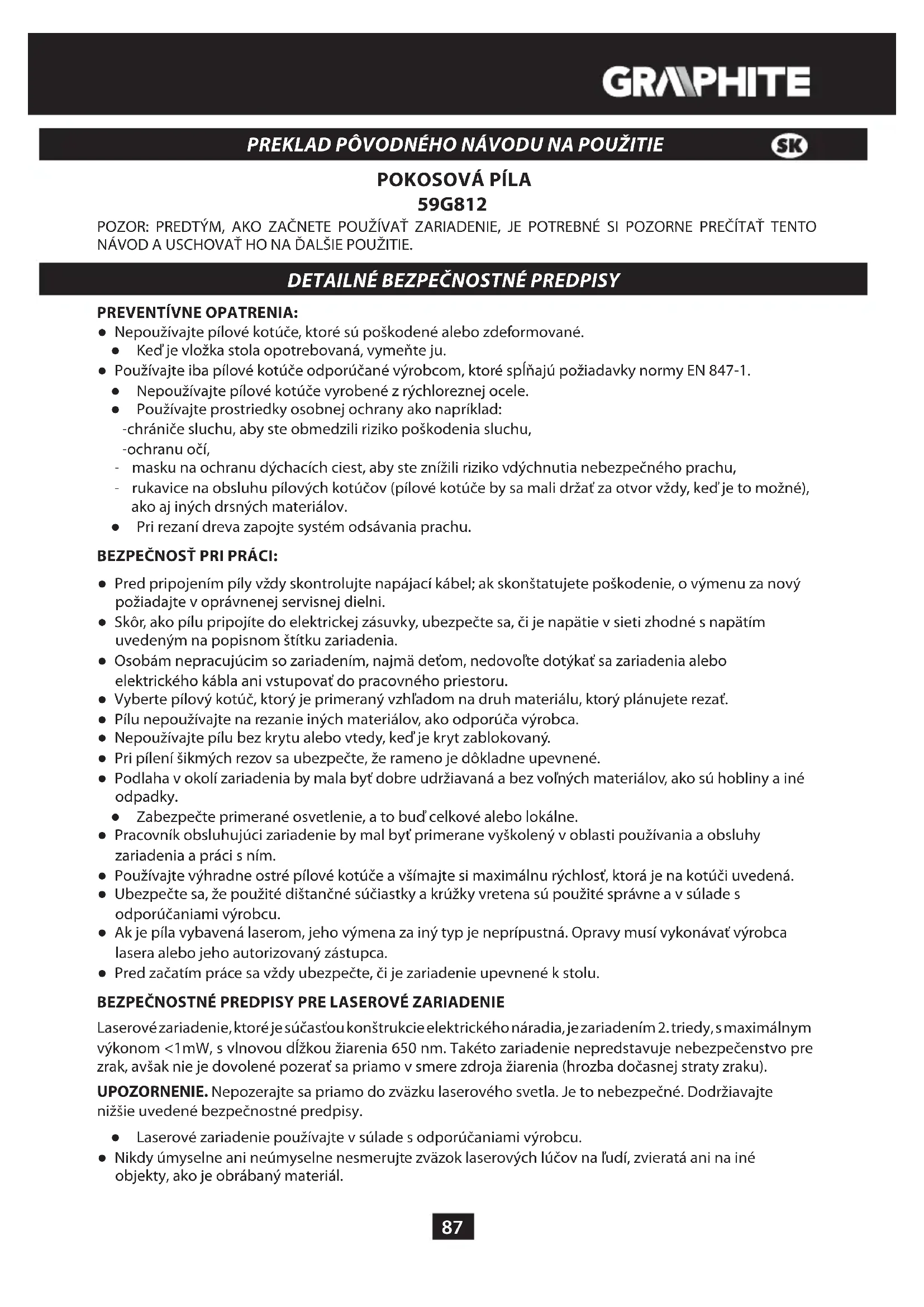 59G812 - Píla Graphite - Bezplatný návod na obsluhu