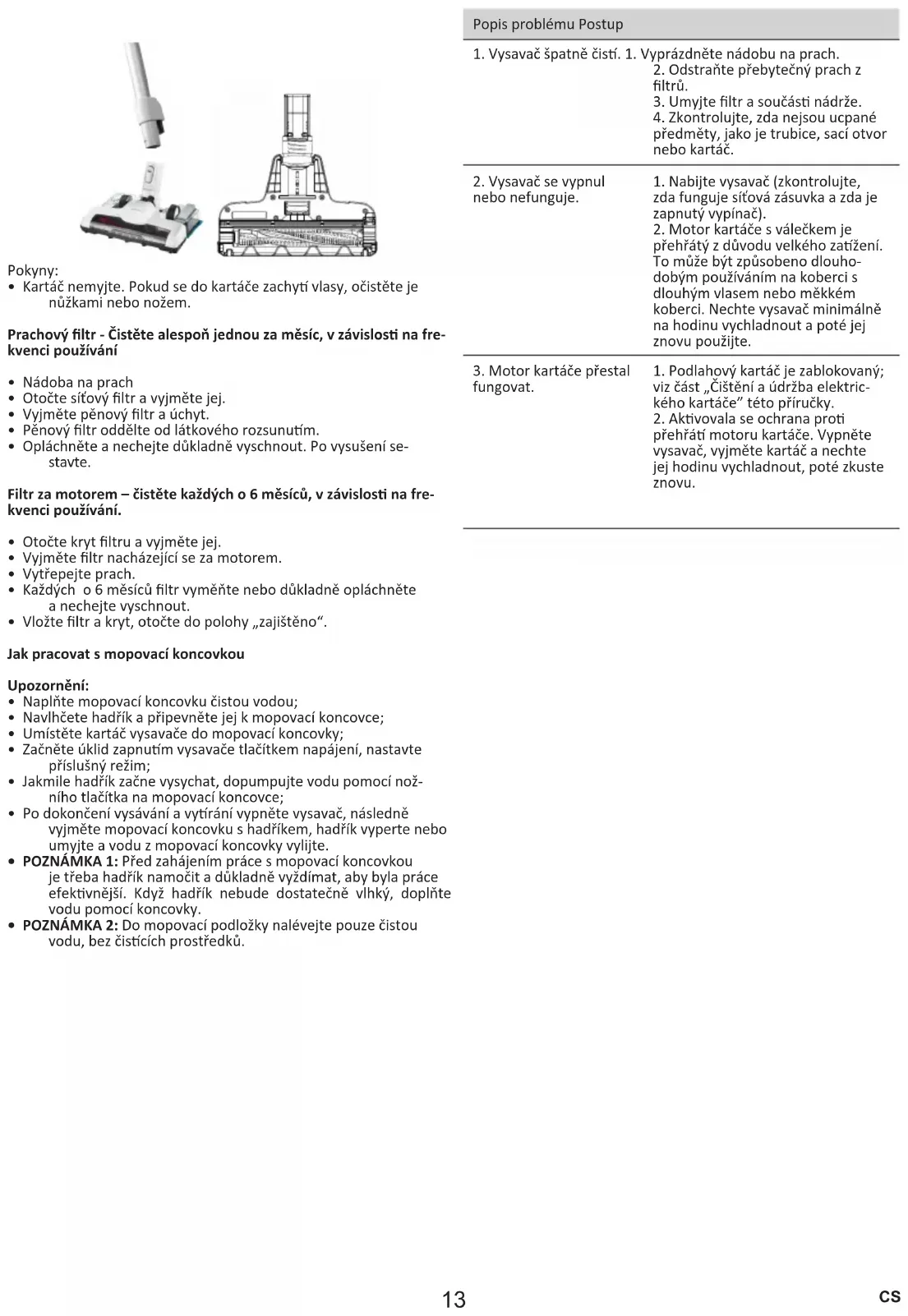 - Kefu neumývajte. Ak do kefy zaplietli vlasy, náležitým spôso- bom ich odstráňte, použie nožnice alebo nôž. Prachový lter – čiste aspoň raz za mesiac, príslušne podľa inten- zity používania.