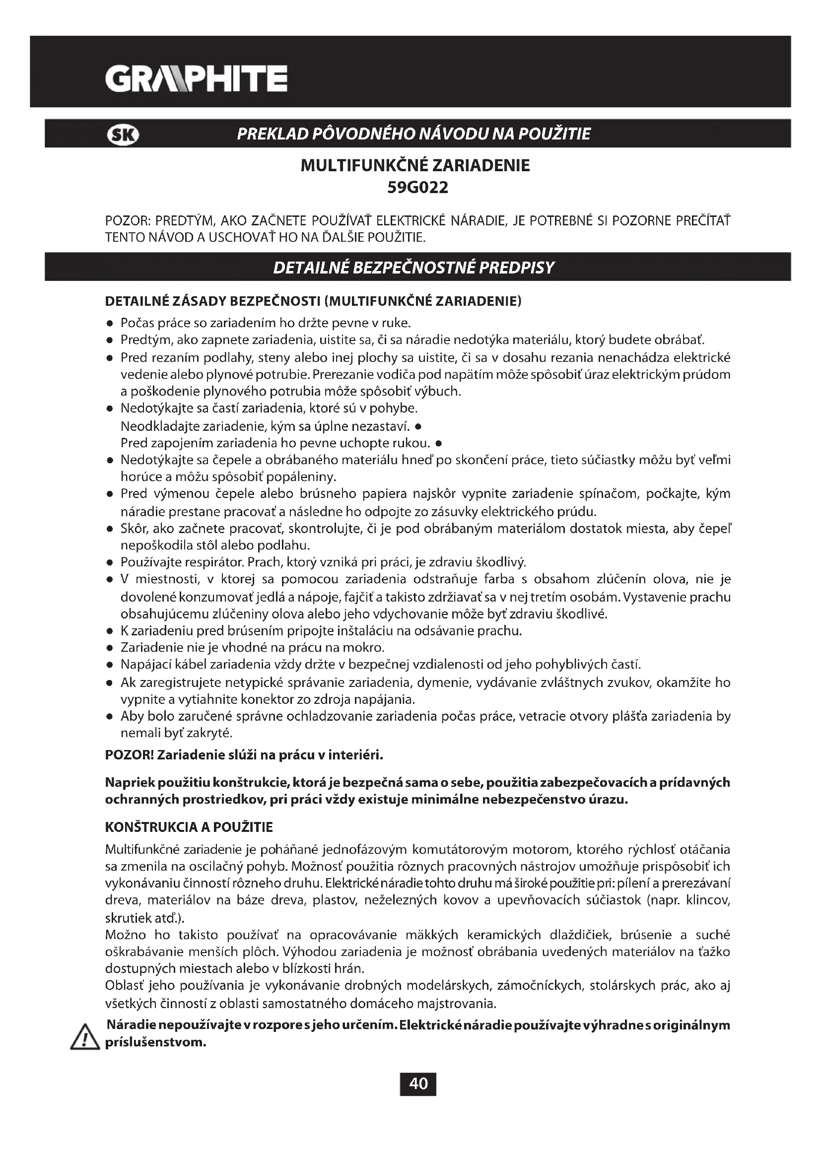 59G022 - Multifunkčné náradie Graphite - Bezplatný návod na obsluhu