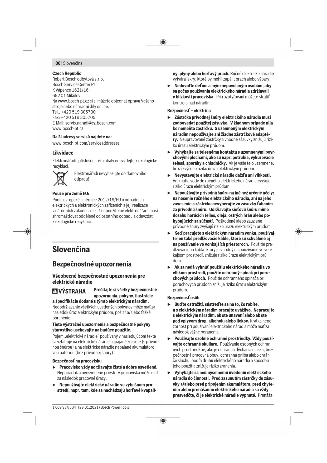 1450–3200 Zdvih mm 20 Max. hĺbka rezu – do dreva mm 70 – do hliníka mm 10 – do ocele (nelegovanej) mm 6 Uhol rezu (naľavo/napravo) max. ° 45 Hmotnosť podľa EPTA-Procedure 01:2014 kg 2,1 Trieda ochrany / II Údaje platia pre menovité napätie [U] 230 V. Pri odlišných napätiach avo vyhotoveniach špecifických pre jednotlivé krajiny sa môžu tieto údaje líšiť. Informácia ohlučnosti/vibráciách Hodnoty emisií hluku zistené podľa EN62841‑2‑11. Úroveň hluku elektrického náradia pri použití váhového fil- traA je typicky: úroveň akustického tlaku 86dB(A); úroveň akustického výkonu 97dB(A). Neistota K=5dB. Noste prostriedky na ochranu sluchu! Celkové hodnoty vibrácií a
