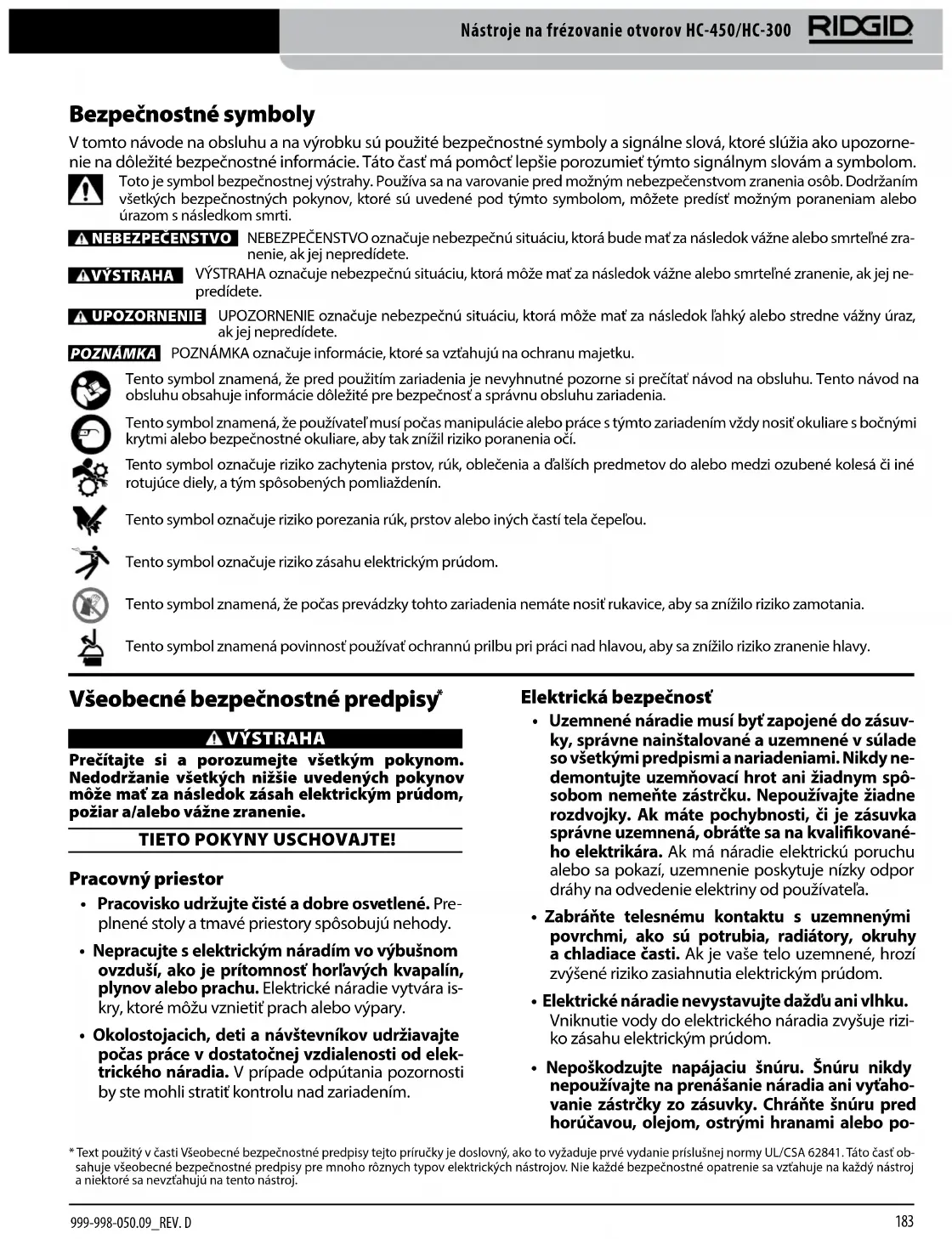 NÁVOD NA OBSLUHU HC450 RIDGID