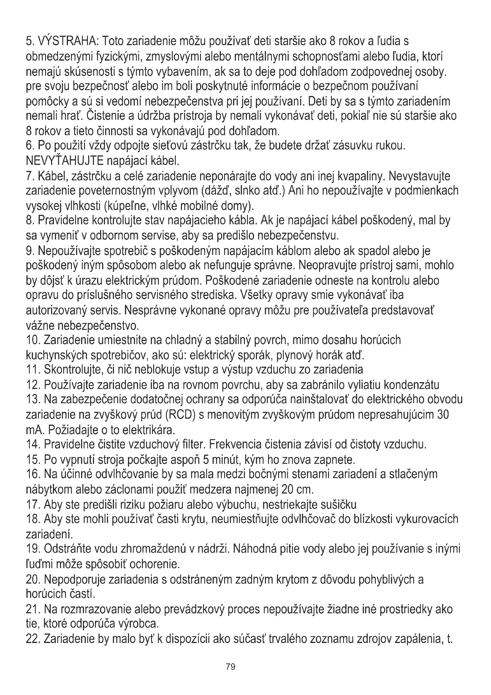 9. Nepoužívajte odvlhčovač ako stoličku alebo podnožku.