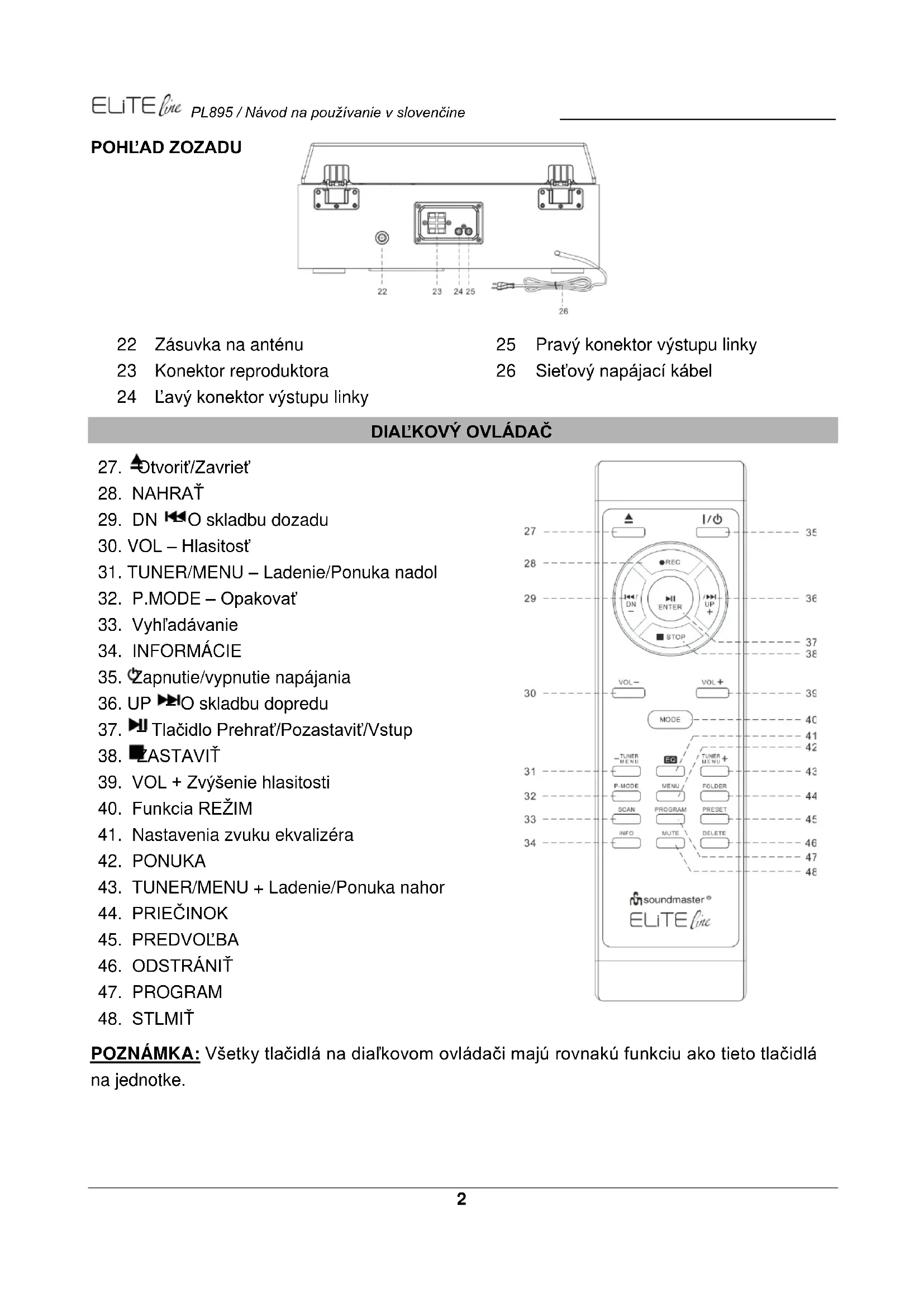 NÁVOD NA OBSLUHU PL895 Soundmaster