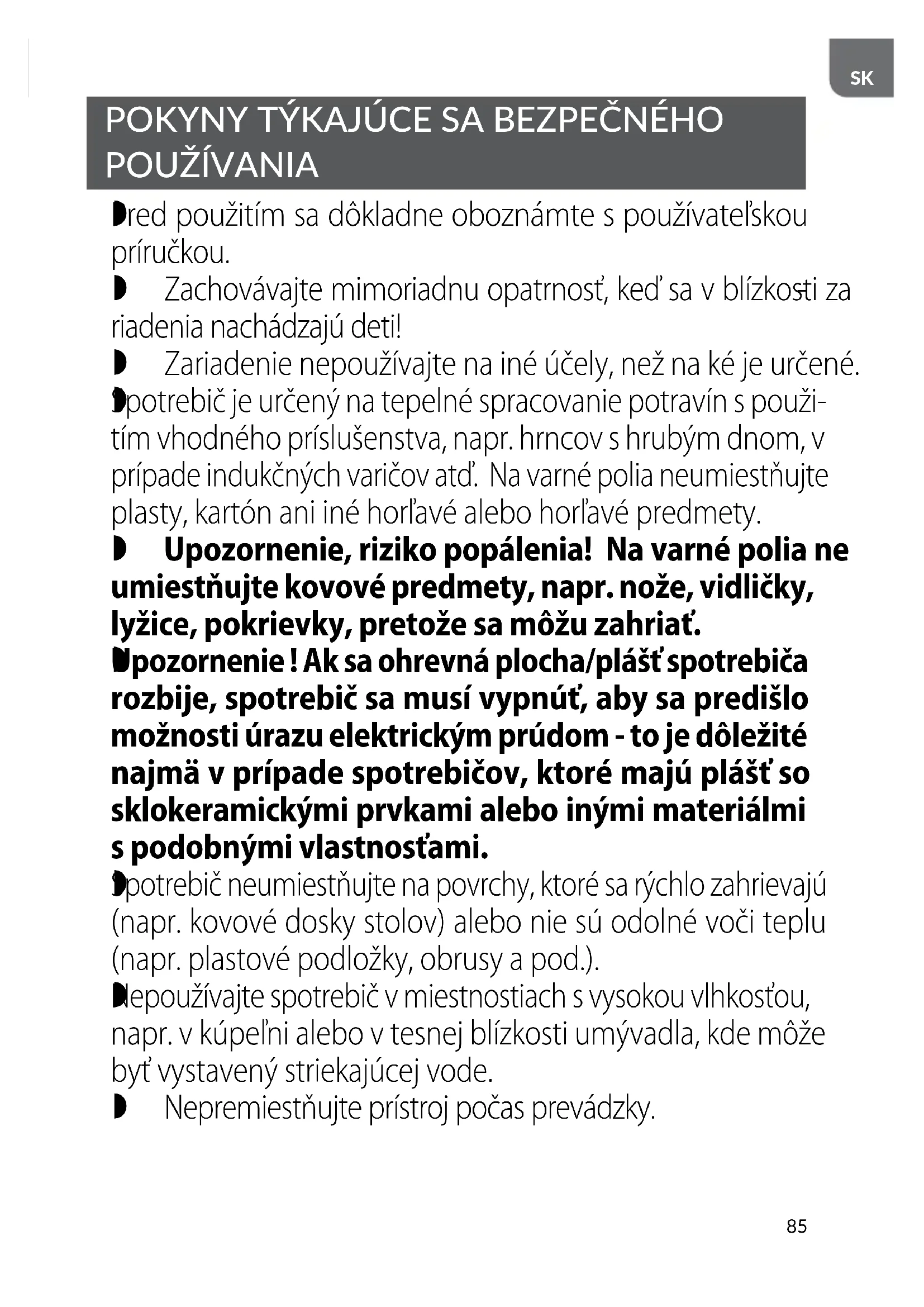 Upozornenie ! Ak sa ohrevná plocha/plášť spotrebiča rozbije, spotrebič sa musí vypnúť, aby sa predišlo možnosti úrazu elektrickým prúdom - to je dôležité najmä v prípade spotrebičov, ktoré majú plášť so sklokeramickými prvkami alebo inými materiálmi s podobnými vlastnosťami.