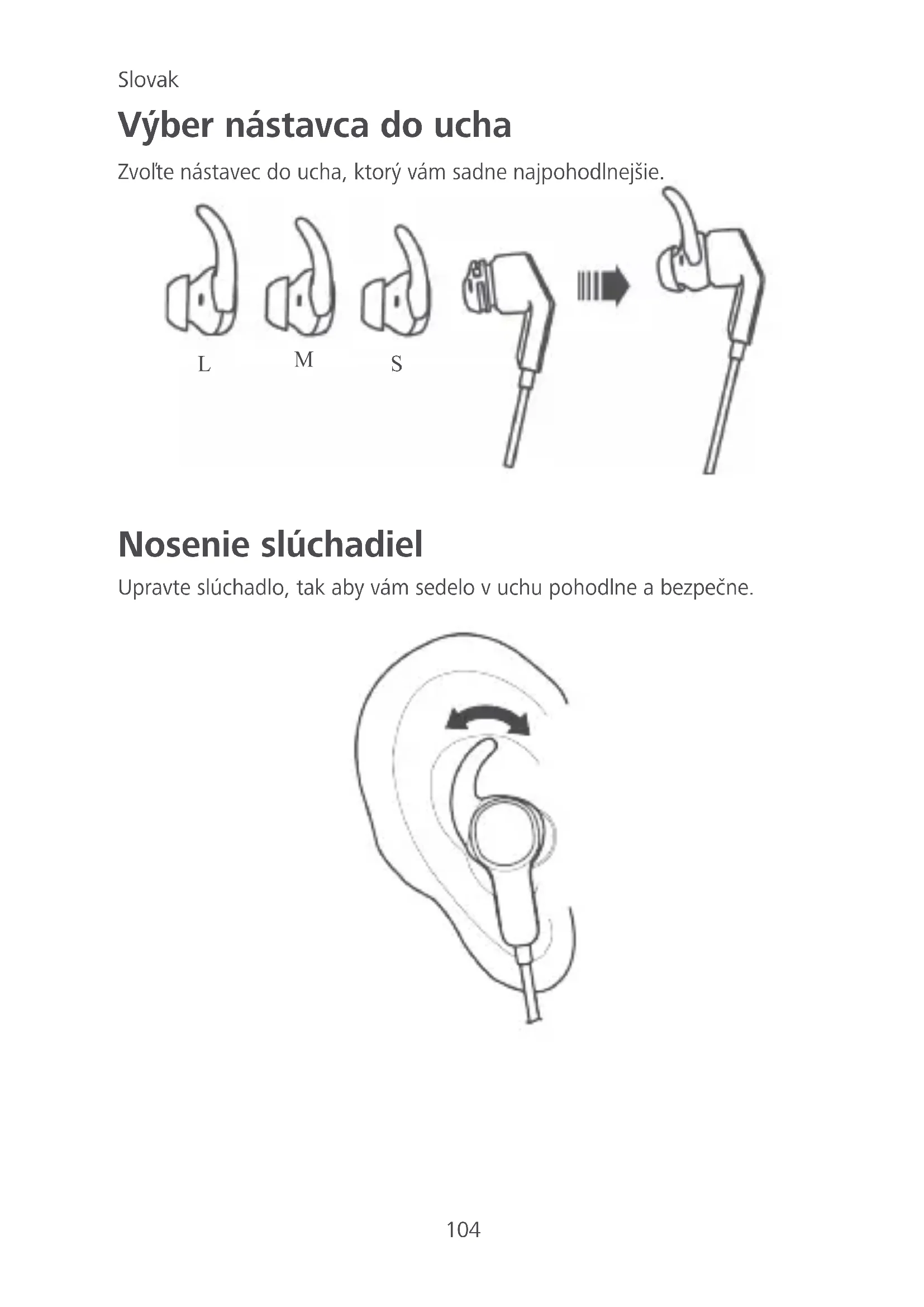 Nosenie slúchadiel Upravte slúchadlo, tak aby vám sedelo v uchu pohodlne a bezpečne.