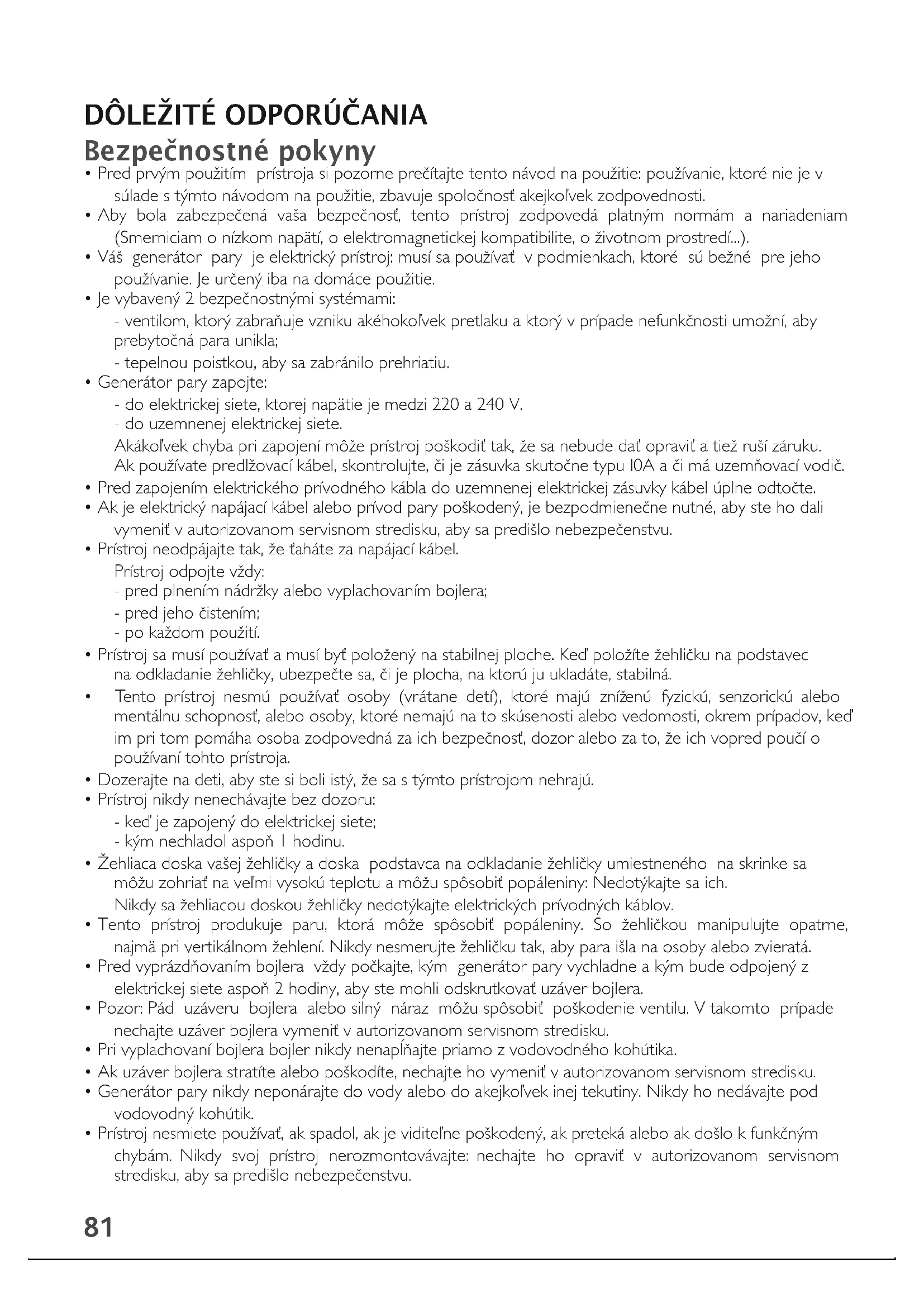 - Vበgenerátor pary je elektrick˘ prístroj: musí sa pouÏívaÈ v podmienkach, ktoré sú beÏné pre jeho pouÏívanie. Je urãen˘ iba na domáce pouÏitie.