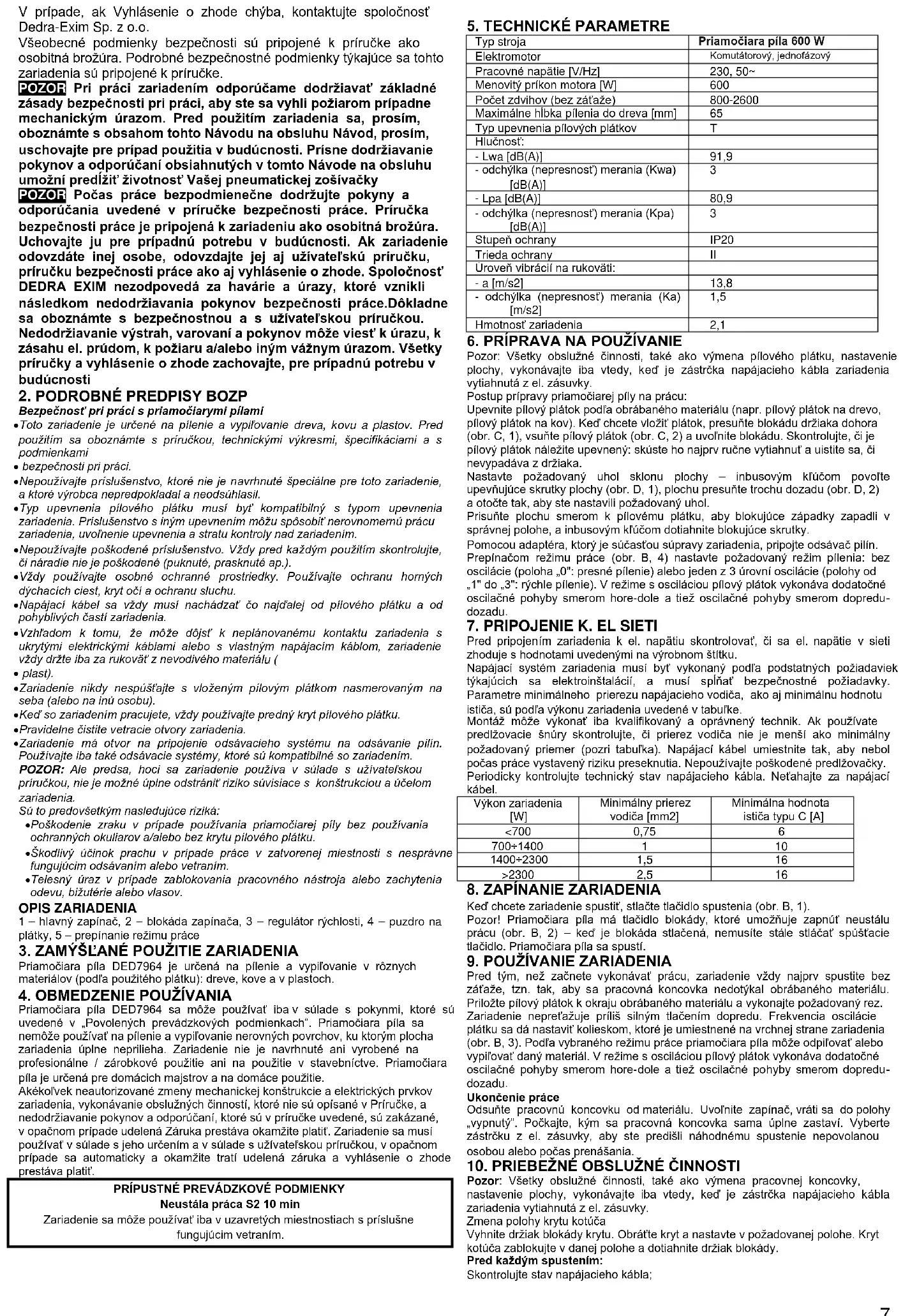 elektronických zariadení Vyhlásenie o zhode bola pripojené k príručke ako samostatný dokument.7 V prípade, ak Vyhlásenie o zhode chýba, kontaktujte spoločnosť Dedra-Exim Sp. z o.o. Všeobecné podmienky bezpečnosti sú pripojené k príručke ako osobitná brožúra. Podrobné bezpečnostné podmienky týkajúce sa tohto zariadenia sú pripojené k príručke. POZOR Pri práci zariadením odporúčame dodržiavať základné zásady bezpečnosti pri práci, aby ste sa vyhli požiarom prípadne mechanickým úrazom. Pred použitím zariadenia sa, prosím, oboznámte s obsahom tohto Návodu na obsluhu Návod, prosím, uschovajte pre prípad použitia v budúcnosti. Prísne dodržiavanie pokynov a odporúčaní obsiahnutých v tomto Návode na obsluhu umožní predĺžiť životnosť Vašej pneumatickej zošívačky POZOR Počas práce bezpodmienečne dodržujte pokyny a odporúčania uvedené v príručke bezpečnosti práce. Príručka bezpečnosti práce je pripojená k zariadeniu ako osobitná brožúra. Uchovajte ju pre prípadnú potrebu v budúcnosti. Ak zariadenie odovzdáte inej osobe, odovzdajte jej aj užívateľskú príručku, príručku bezpečnosti práce ako aj vyhlásenie o zhode. Spoločnosť DEDRA EXIM nezodpovedá za havárie a úrazy, ktoré vznikli následkom nedodržiavania pokynov bezpečnosti práce.Dôkladne sa oboznámte s bezpečnostnou a s užívateľskou príručkou. Nedodržiavanie výstrah, varovaní a pokynov môže viesť k úrazu, k zásahu el. prúdom, k požiaru a/alebo iným vážnym úrazom. Všetky príručky a vyhlásenie o zhode zachovajte, pre prípadnú potrebu v budúcnosti