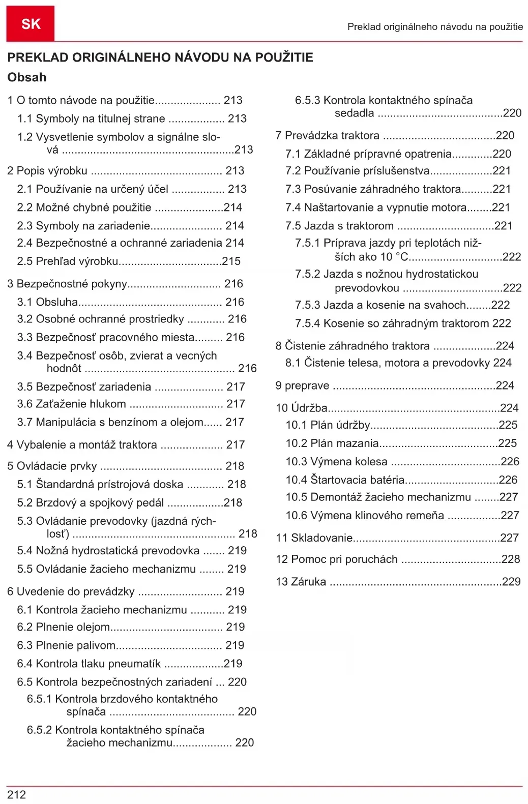 Preklad originálneho návodu na použitie PREKLAD ORIGINÁLNEHO NÁVODU NA POUŽITIE Obsah 1 O tomto návode na použitie..................... 213