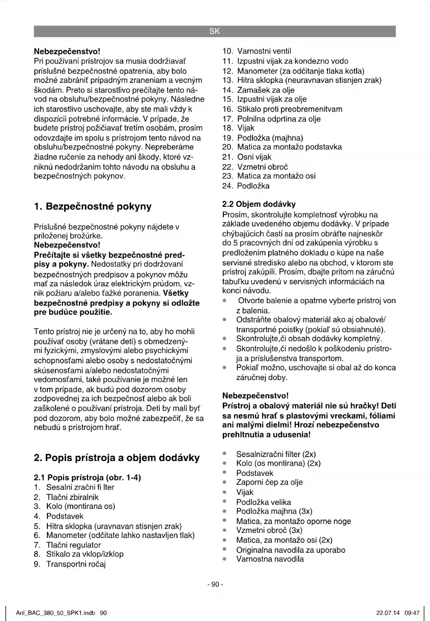 BAC 380/50 - Kompresor Bavaria - Bezplatný návod na obsluhu