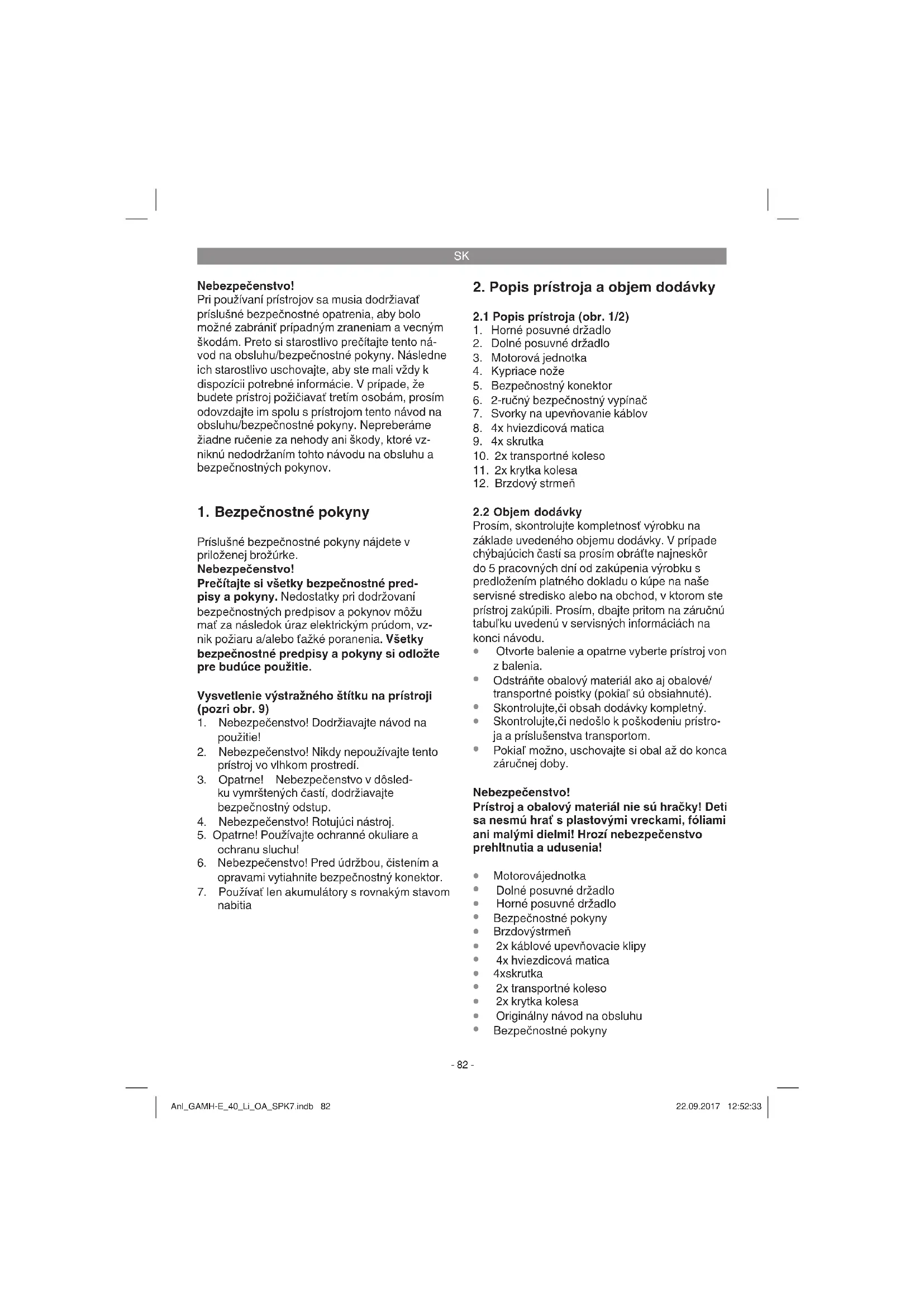 GAMH-E 40 Li OA - Kosačka na trávu Gardol - Bezplatný návod na obsluhu