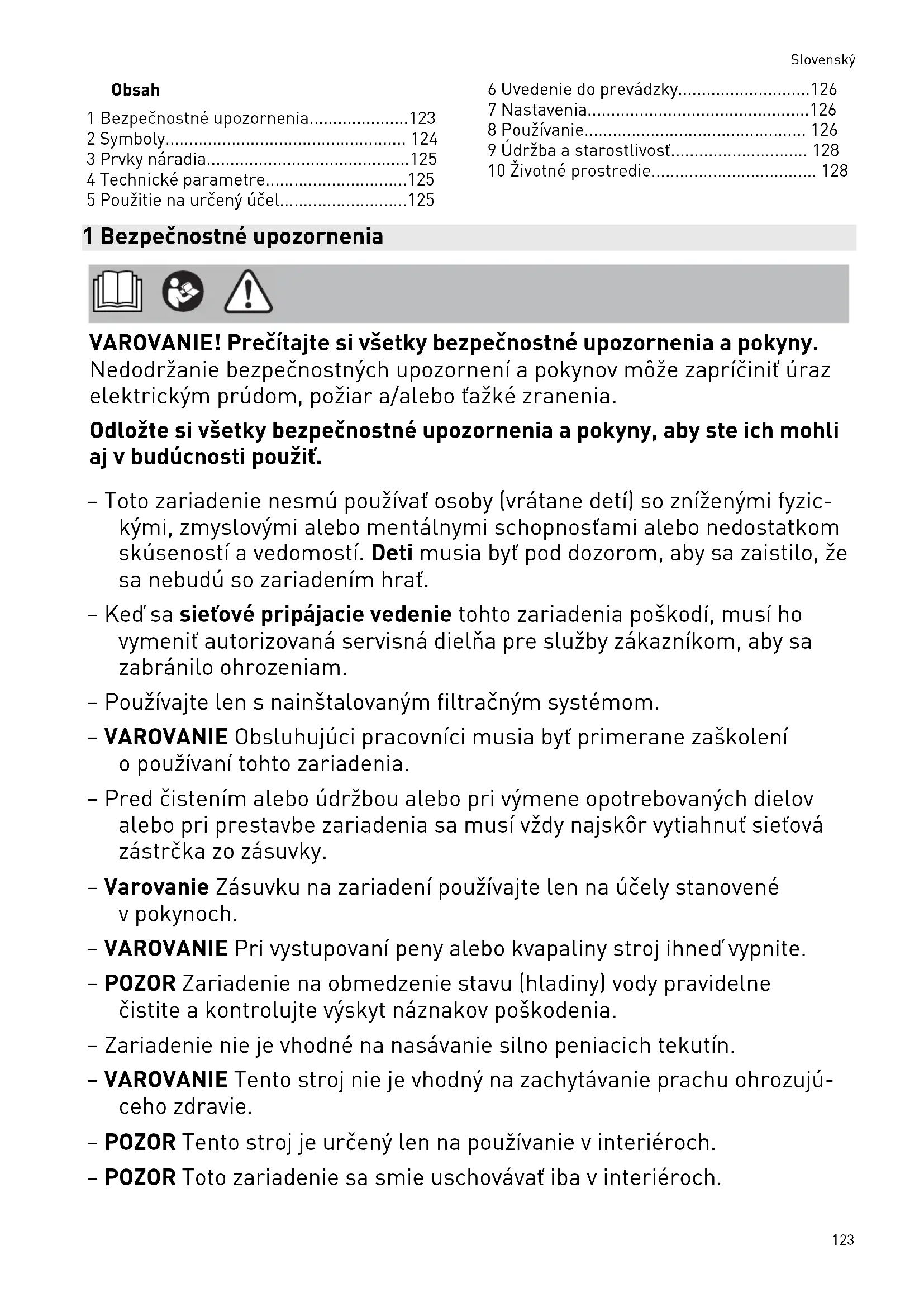 - 5 Použitie na určený účel p. 125