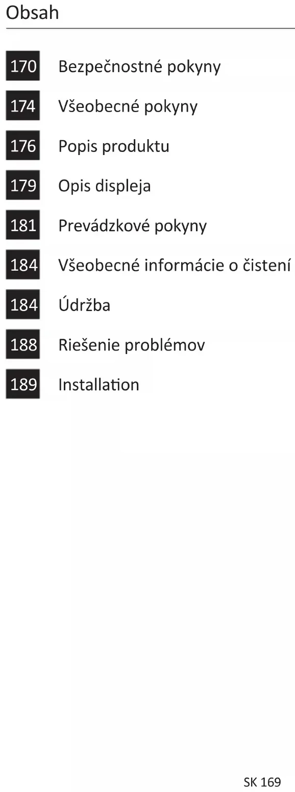- Na čistenie skiel dvierok rúry nepoužívajte drsné alebo abrazívne materiály alebo ostré kovové škrabky, pretože môžu poškriabať povrch a spôsobiť rozbie skla. Bezpečnostné pokynySK 171