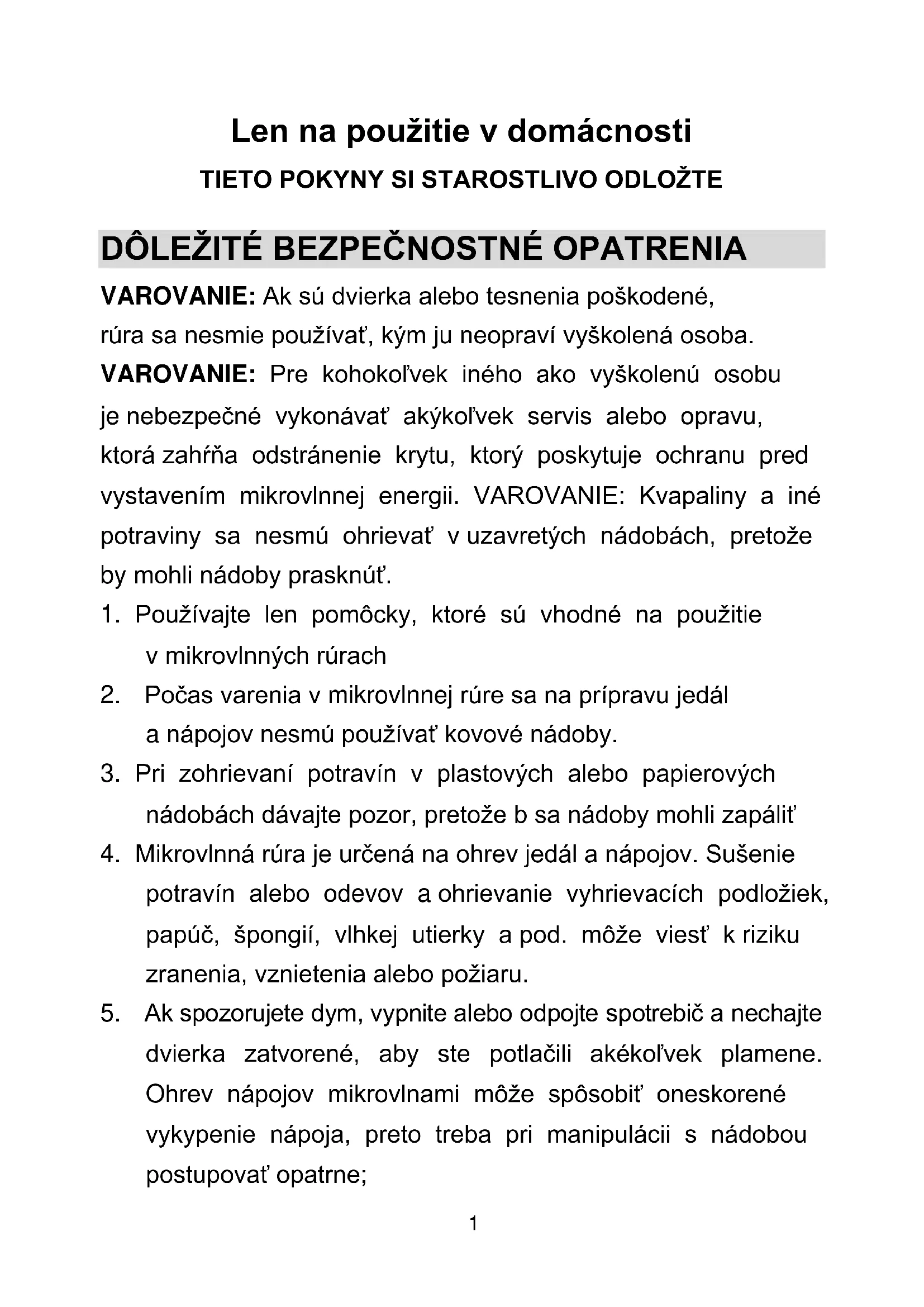 1. Varovanie: V mikrovlnnej rúre je mikrovlnné žiarenie a vysoké