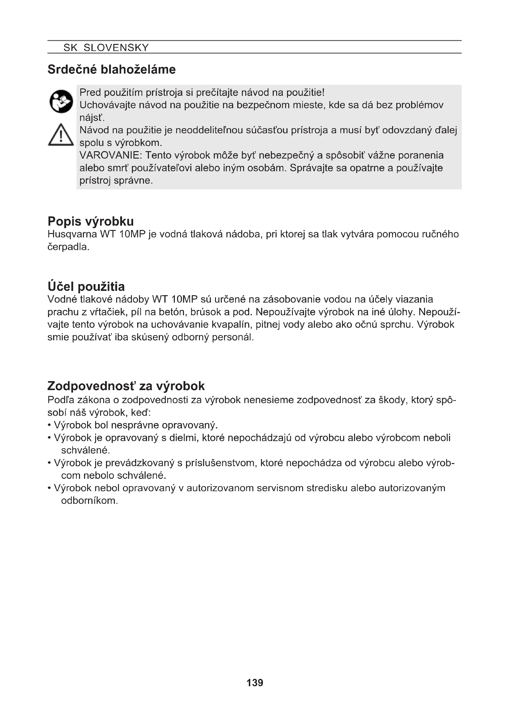NÁVOD NA OBSLUHU WT 10MP HUSQVARNA