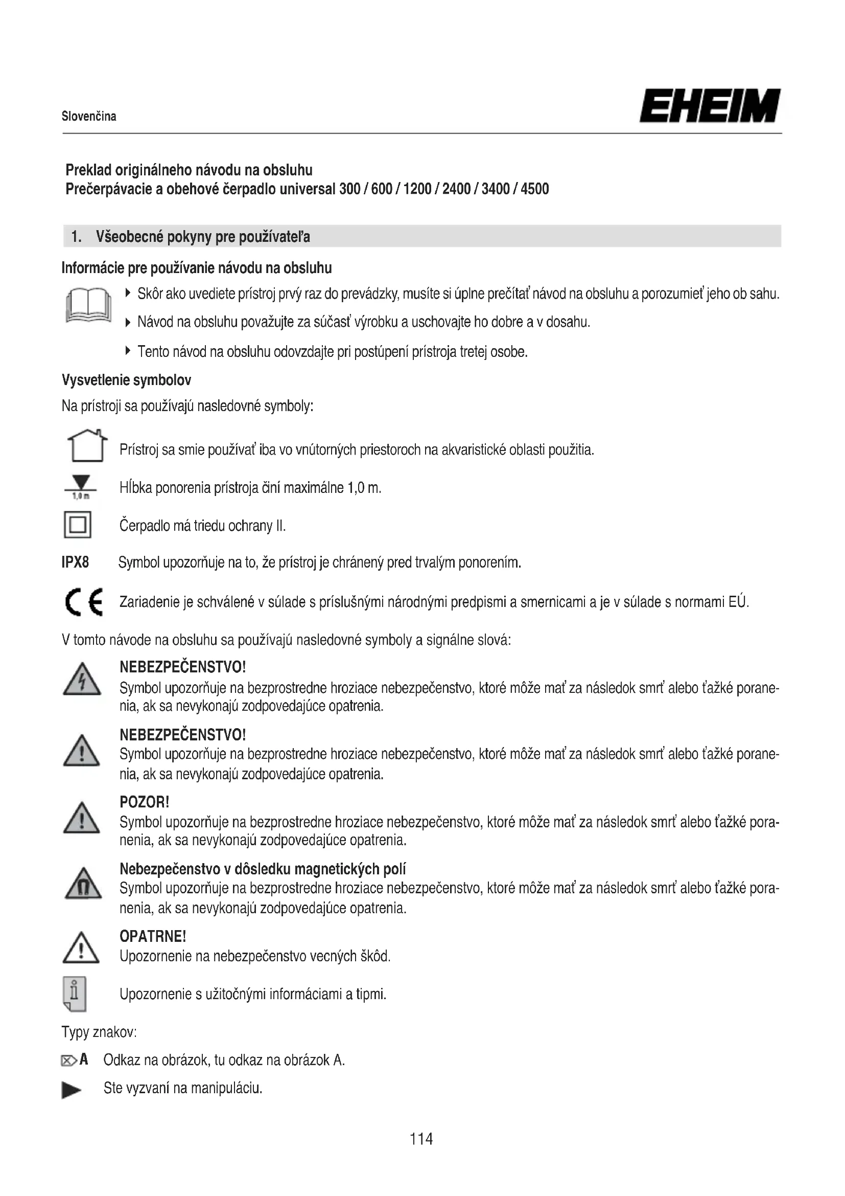 za dodržiavania technickych údajov. Použiteľné vo vonkajšom prostredí, vhodné do exteriéru (pozri číslo typu na typovom štítku): EHEIM universal 300 č. typu 1048019 až 1048209 EHEIM universal 600 č. typu 1048019 až 1048209 EHEIM universal 1200 č. typu 1250019 až 1250209 EHEIM universal 2400 č. typu 1260010 až 1260200 EHEIM universal 3400 č. typu 1262010 až 1262200