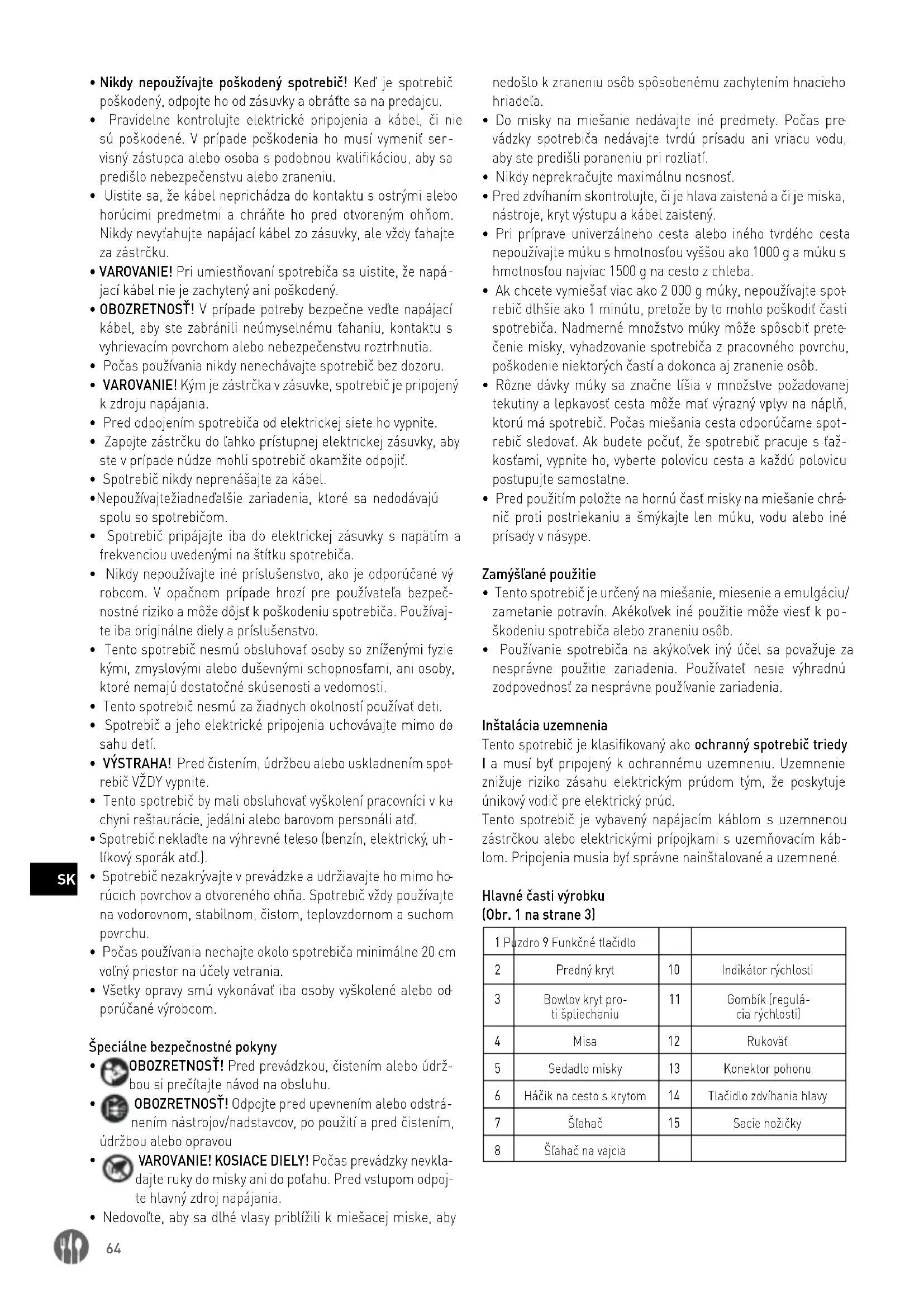 - Tento spotrebič je určený na miešanie, miesenie a emulgáciu/ zametanie potravín. Akékoľvek iné použitie môže viesť k po