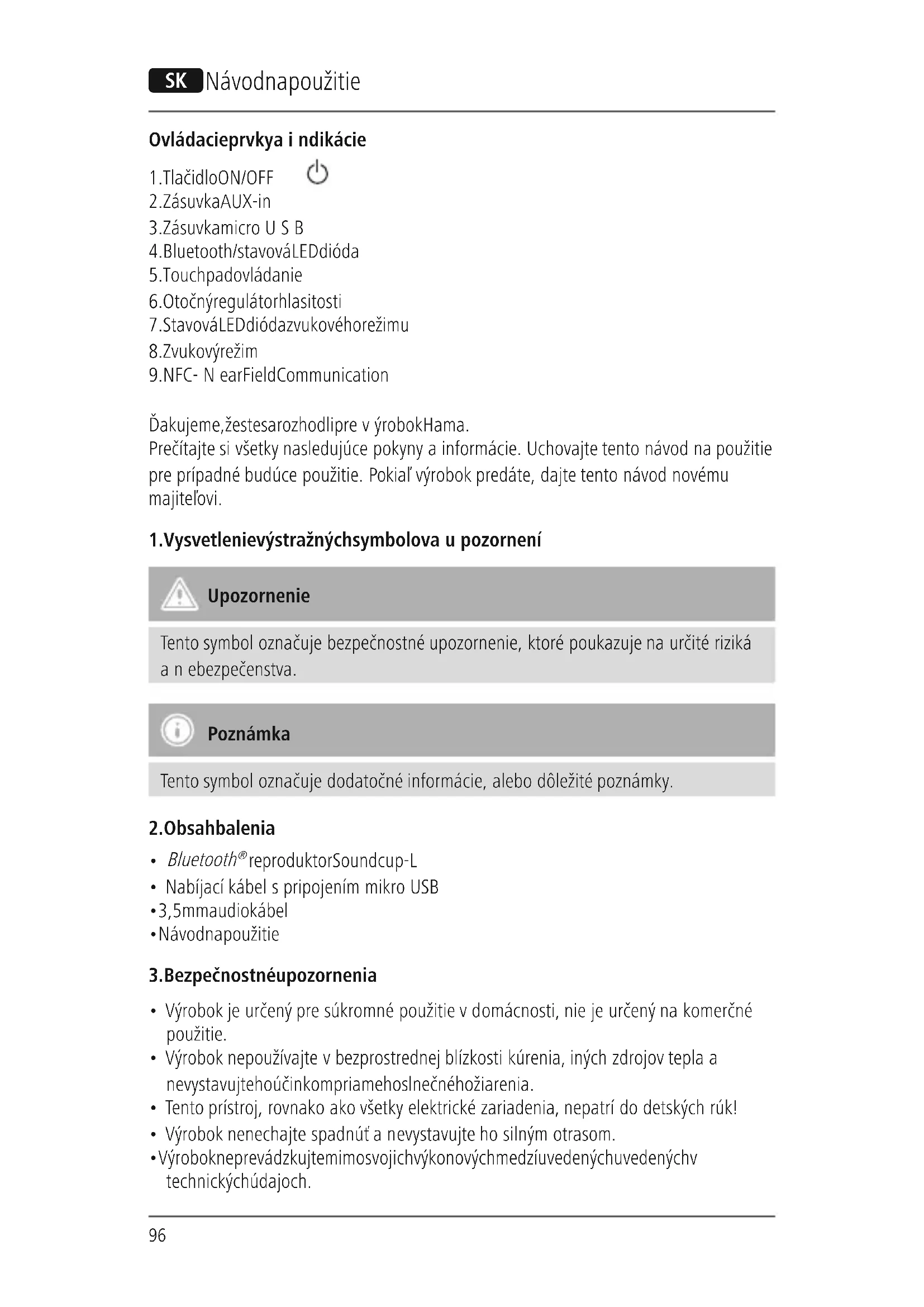 Ďakujeme, že ste sa rozhodli prevýrobok Hama. Prečítajte si všetky nasledujúce pokyny ainformácie. Uchovajte tento návod na použitie preprípadné budúce použitie. Pokiaľ výrobok predáte, dajte tento návod novému majiteľovi.