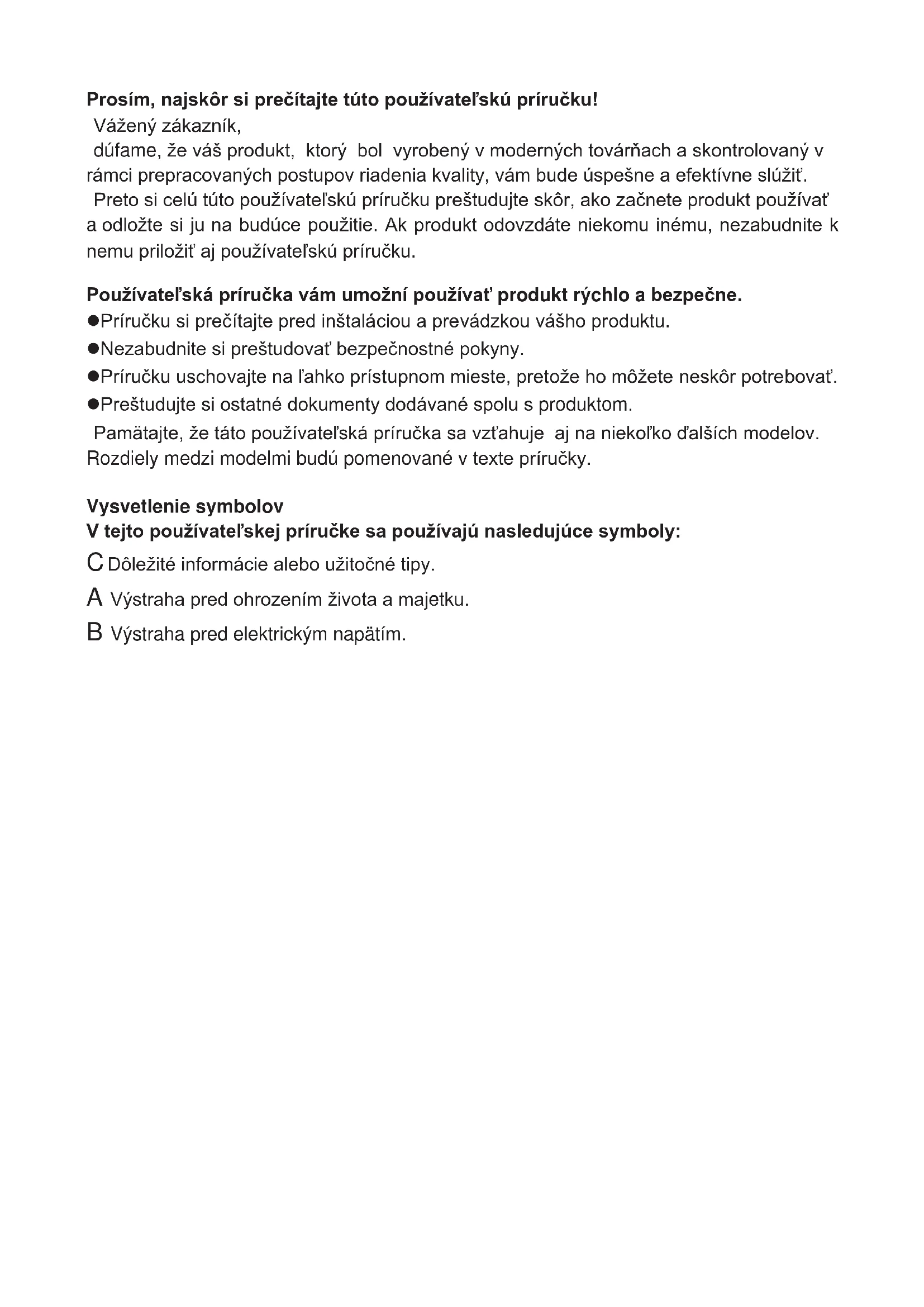 C Obrázky v tejto príručke k obsluhe sú schematické a nemusia sa presne zhodovať s vaším produktom. Ak produkt, ktorý ste si zakúpili, nedisponuje uvádzanými časťami, potom sa to týka iných modelov. 3 SK